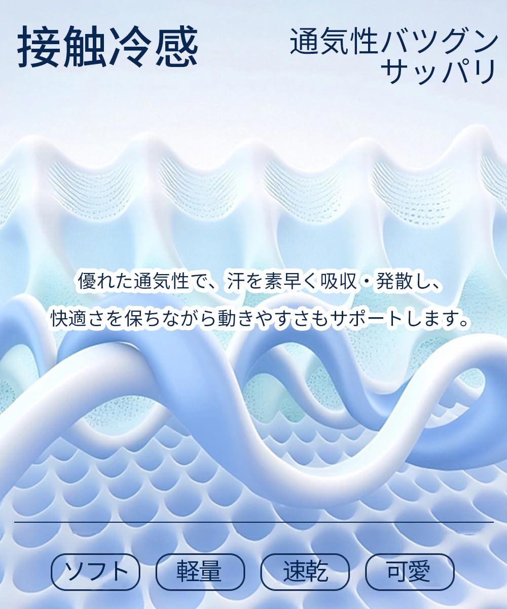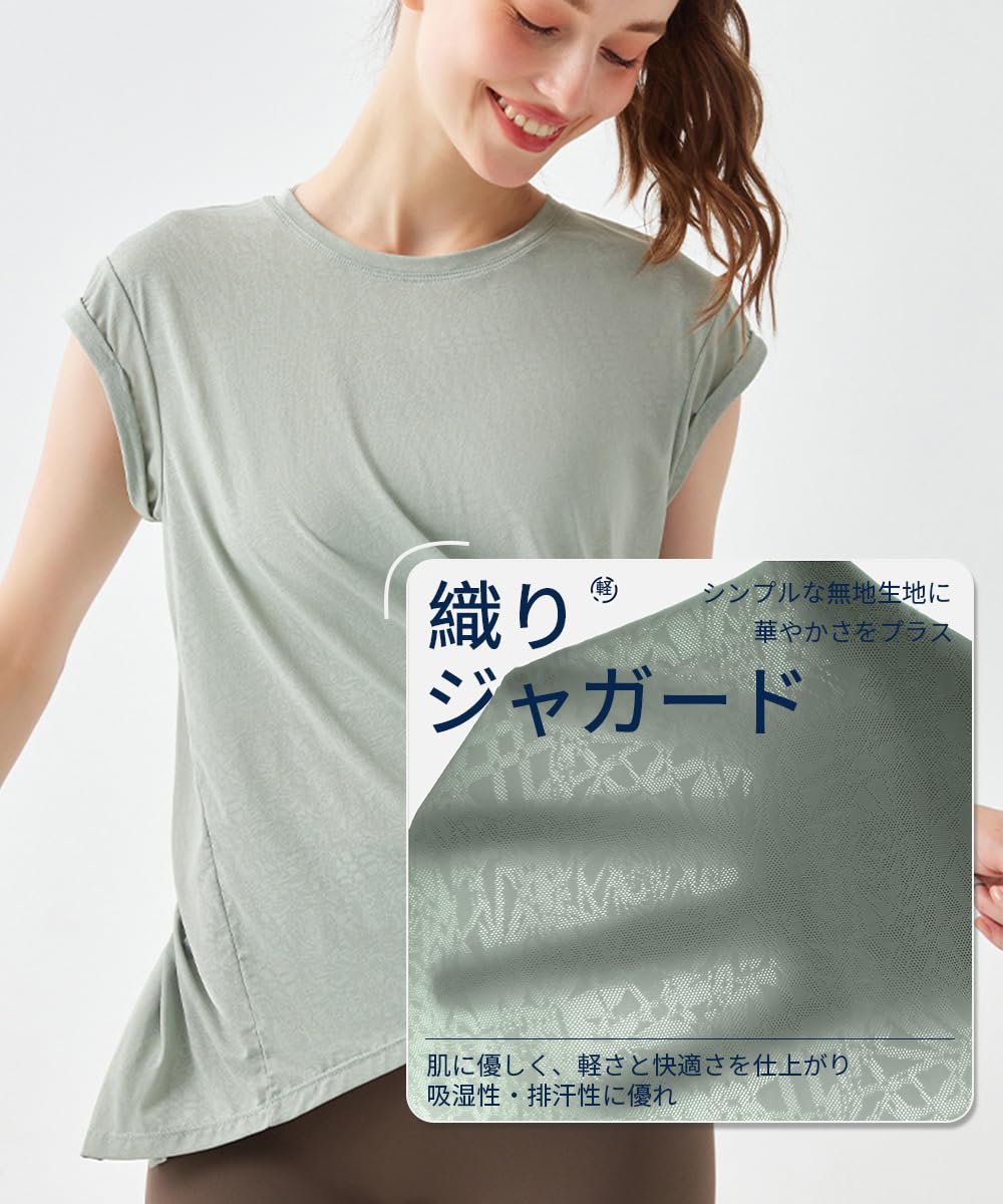 【通気性と速乾性】通気性が抜群の素材を使用しており、運動中の汗を素早く吸収し、外に発散します。これにより、べたつき感を軽減し、肌を常にドライで快適に保ちます。さらに、速乾性も高く、汗をかいた後もすぐに乾くため、次の動作に移りやすいです。ホットヨガやランニング、ピラティスなど、さまざまなアクティブシーンで活躍します。