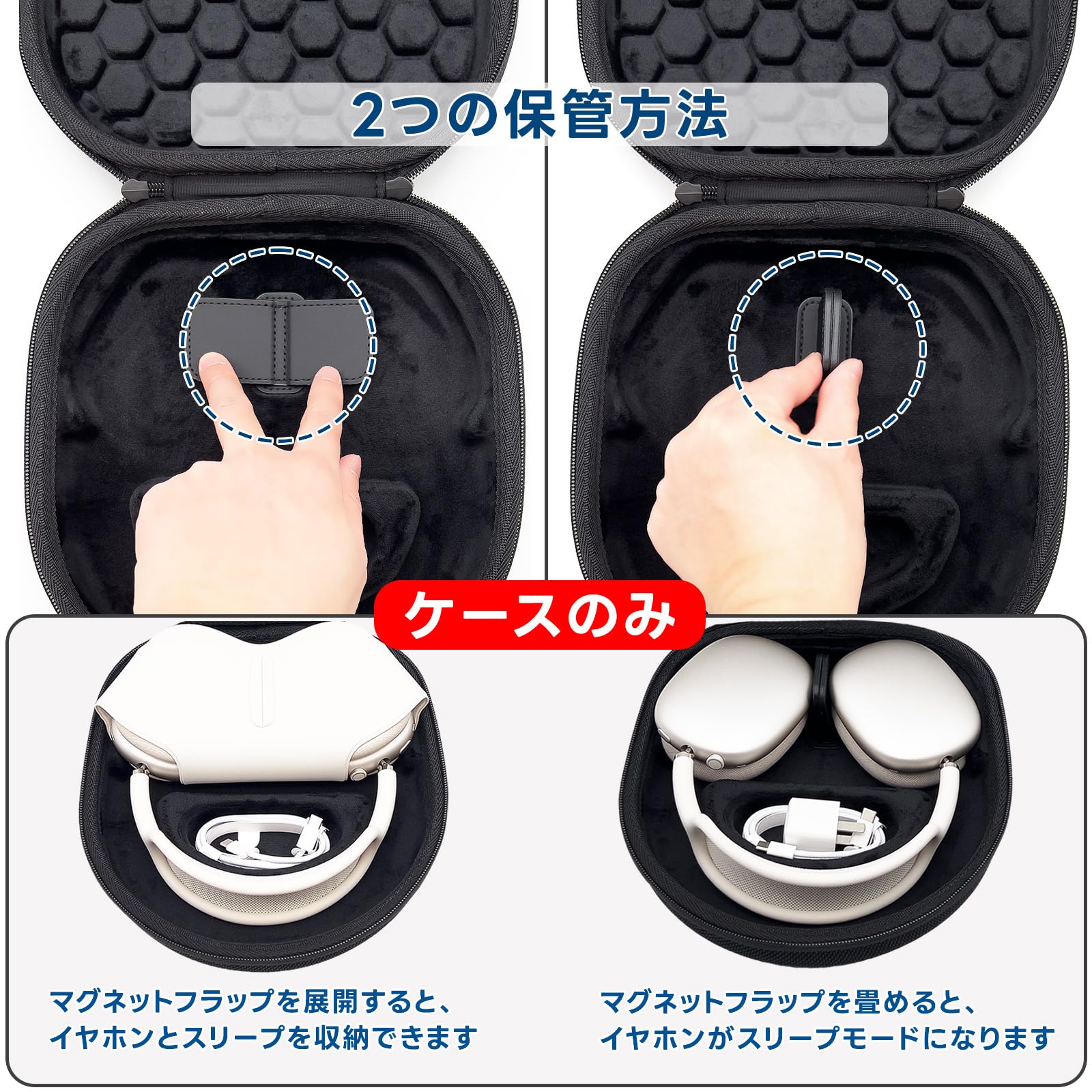 Mocamoro AirPods Max ケース ヘッドフォン収納バッグ ハードケース スリープモード対応 ポータブル 旅行携帯用 エアポッズマックス保護 ブラック