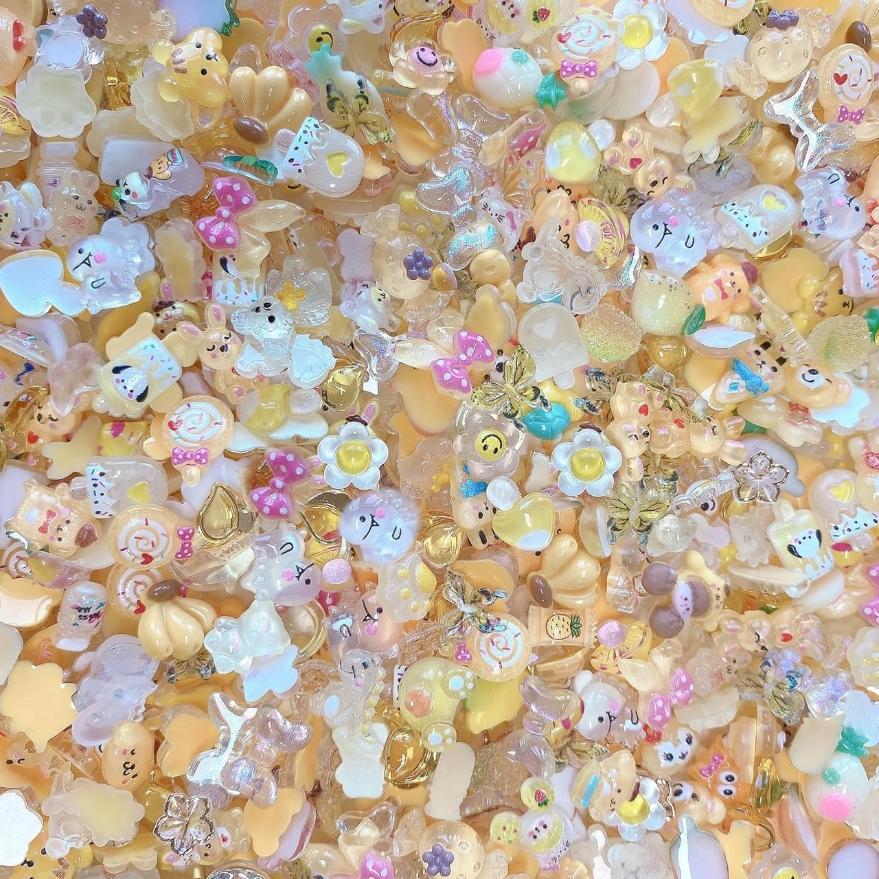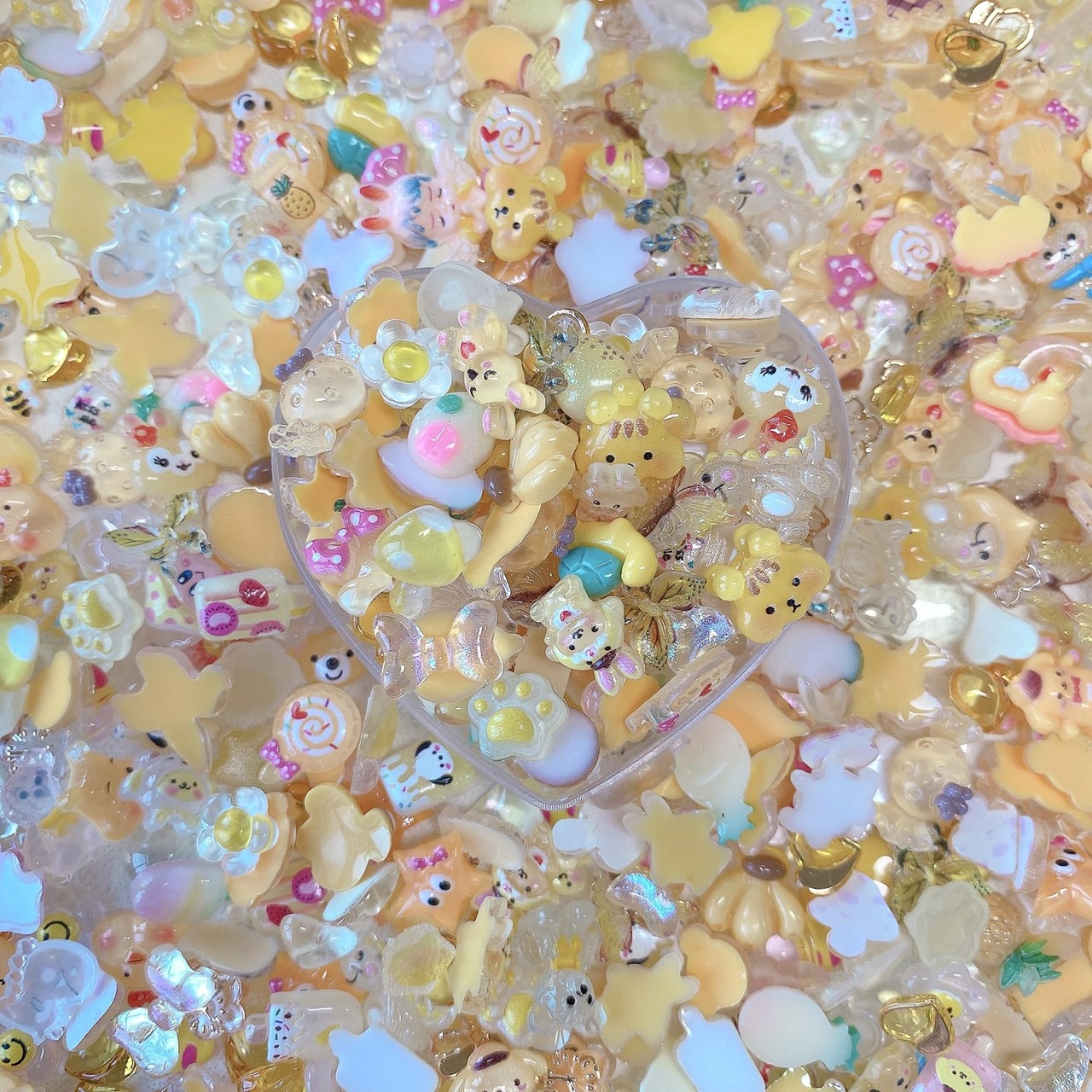 DUOLEIMI ネイルパーツ 黄 ネイルデコパーツ 100pcs 夜光 花 クマ ウサギ ネイルアート ジュエリーパーツ 3D 立体 キャラクター レジン用 DIY デコパーツ (黄)