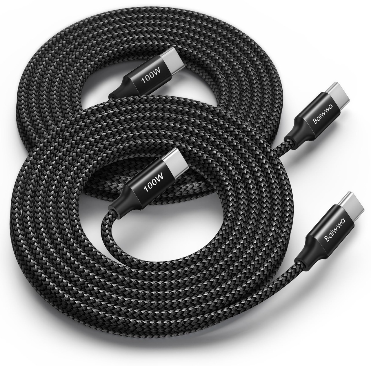 【480Mbpsデータ転送】USB 2.0基準で最大480Mbpsのデータ転送速度をサポートし、1GBのファイルを数秒間で転送完了します。(映像出力は非対応!!)Baiwwa USB-C & USB-C ケーブル (2m 2本セット ブラック)をお届けます。