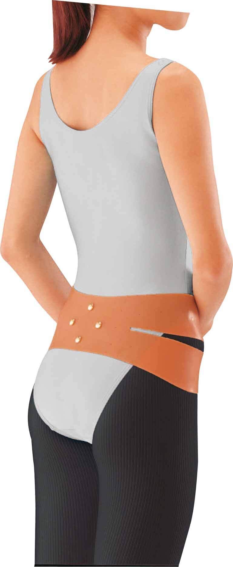 腰に巻くことで、姿勢をサポートして腰への負担を軽減します。
