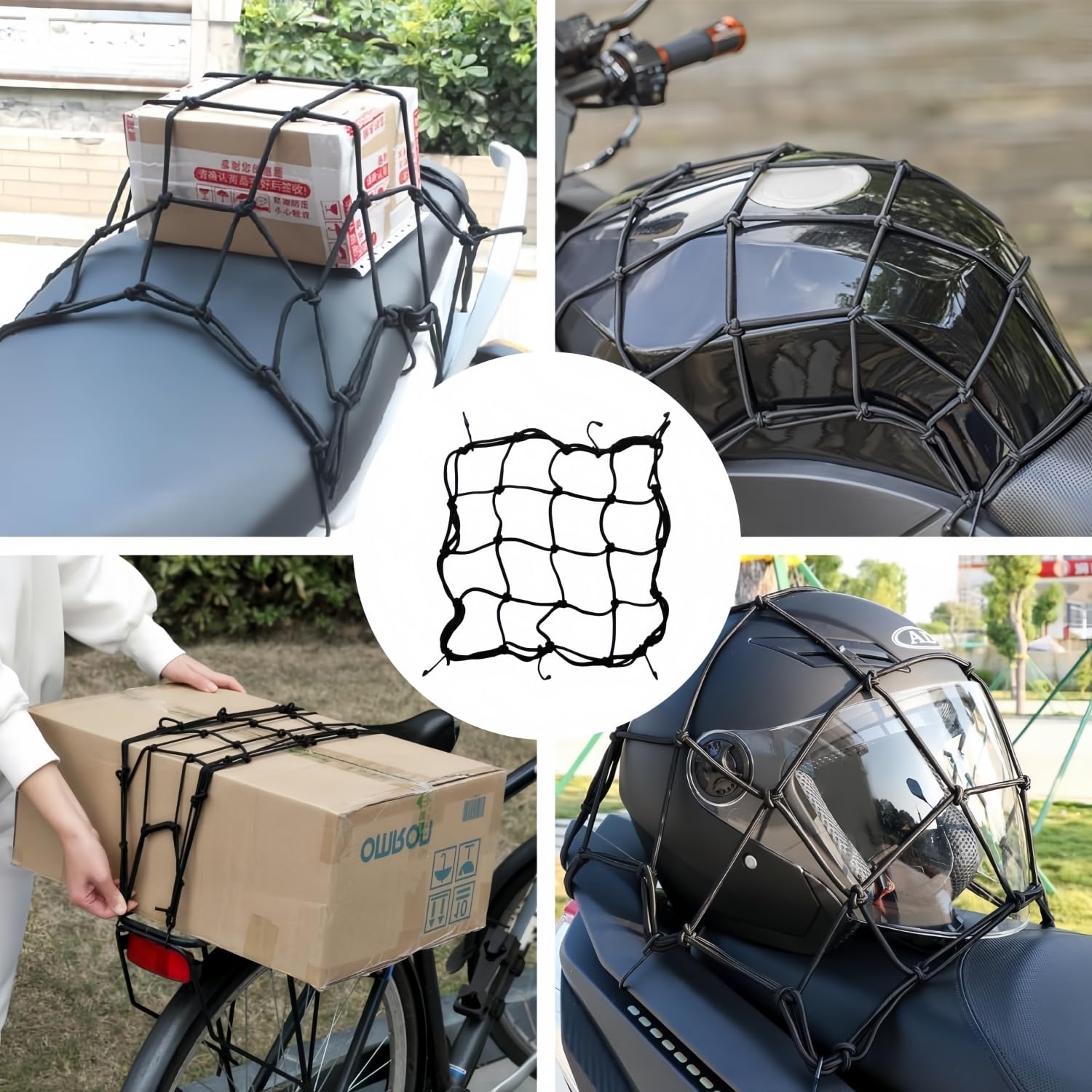 バイク用 ツーリングネット バイクネット 40cmX40cm カーゴネット 荷物固定 伸縮性 荷崩れ防止 フック付き