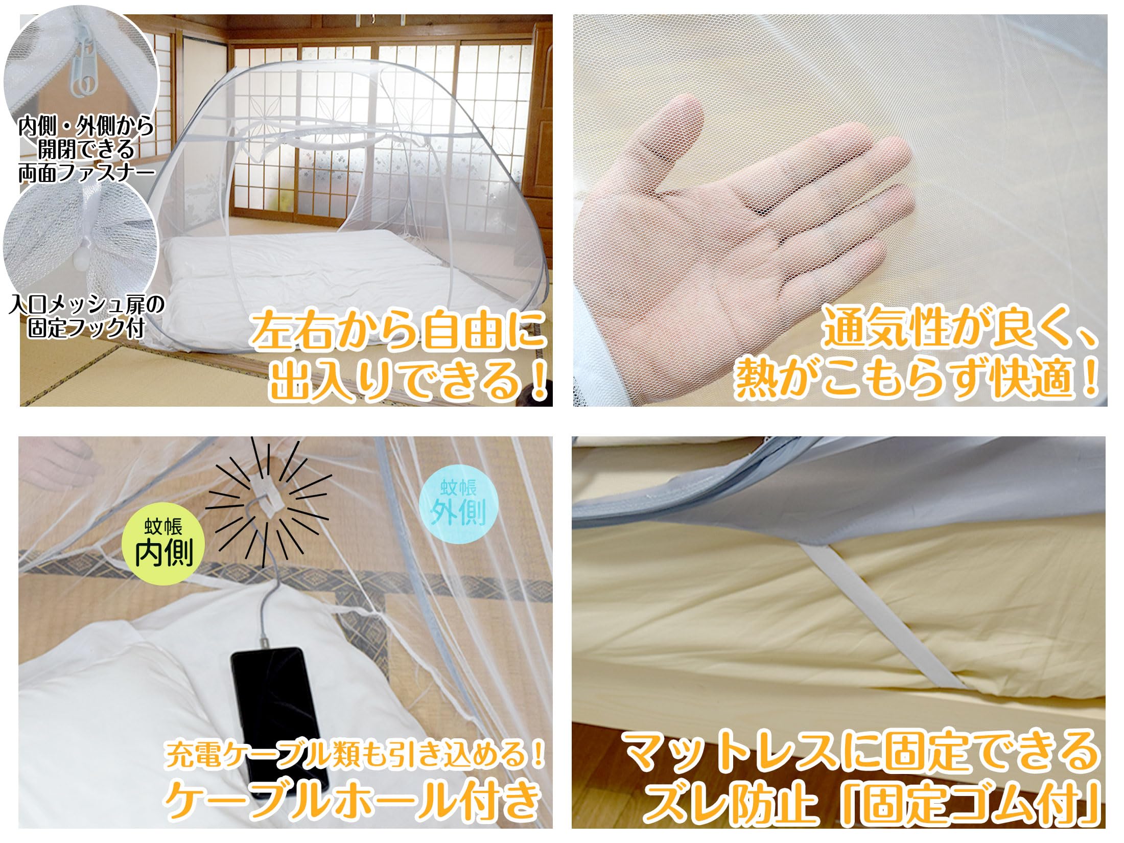 MTK 蚊帳 かや 幅250cm キング 3人用 折りたたみ 底付き ワンタッチ 収納袋 2ドア テント式 日本語説明書 ベッド ベビー 蚊帳んぽ キャンプ テント 蚊 ムカデ 虫対策 虫よけ モスキートネット KAYA-03 | geisha Cat*