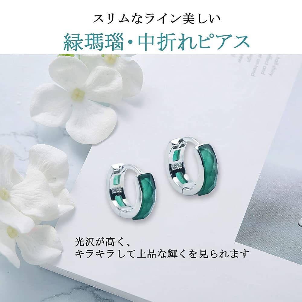 【MOBOTECH】フープピアス 緑ピアス レディース シルバー925 瑪瑙 グリーン 両耳セット フープリング 金属アレルギー対応 アクセサリー リング おしゃれ 人気 シルバー | geisha Cat*