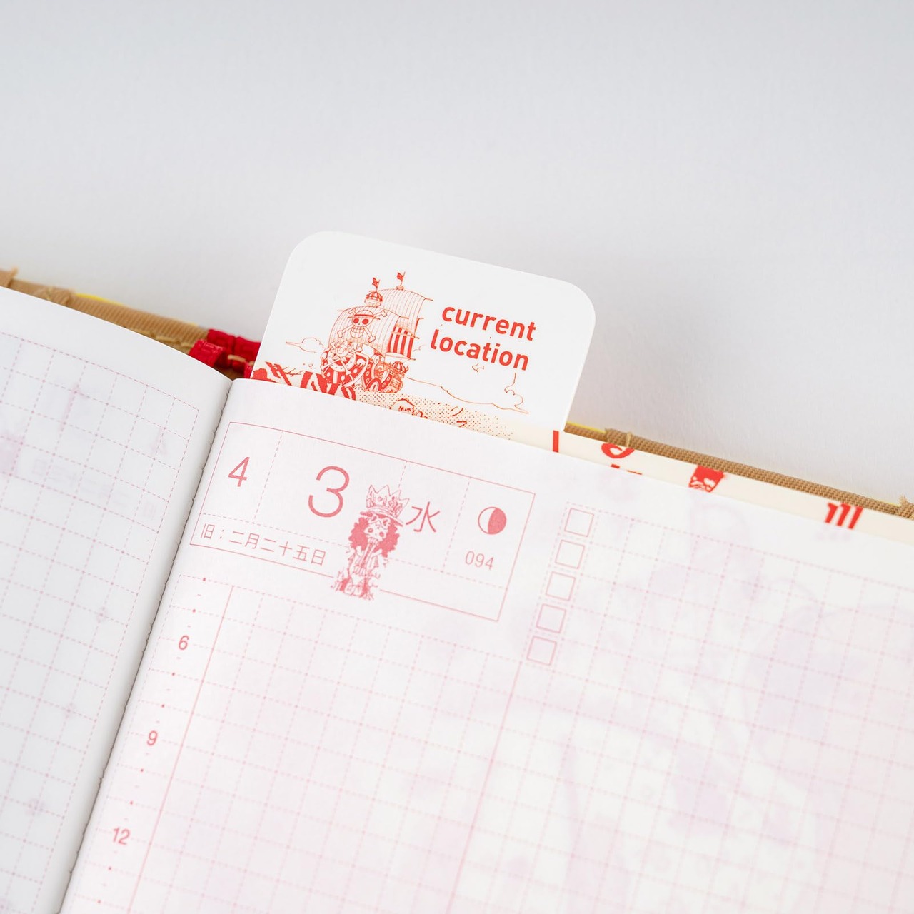 手帳にはさんだときに「いまいる場所(今日のページ)」をあらわすしおりとしても機能します。