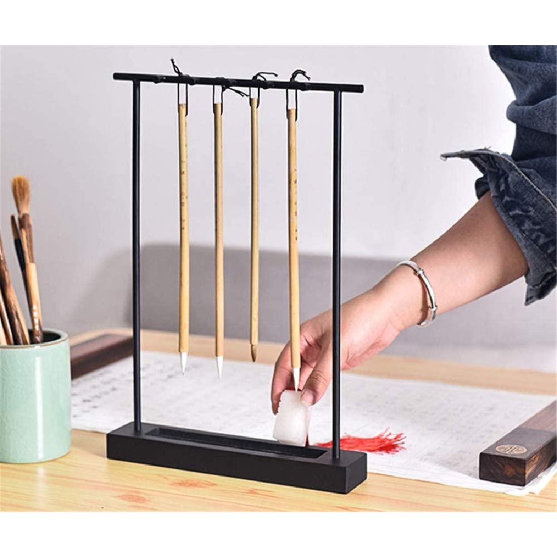 N/A 毛筆 掛け 筆 スタンド 吊り 書道小物 習字 置物 工芸品 アクセサリ 書道用具 展示小物 筆架 書道筆ハンガー 文房具 吊りタイプ