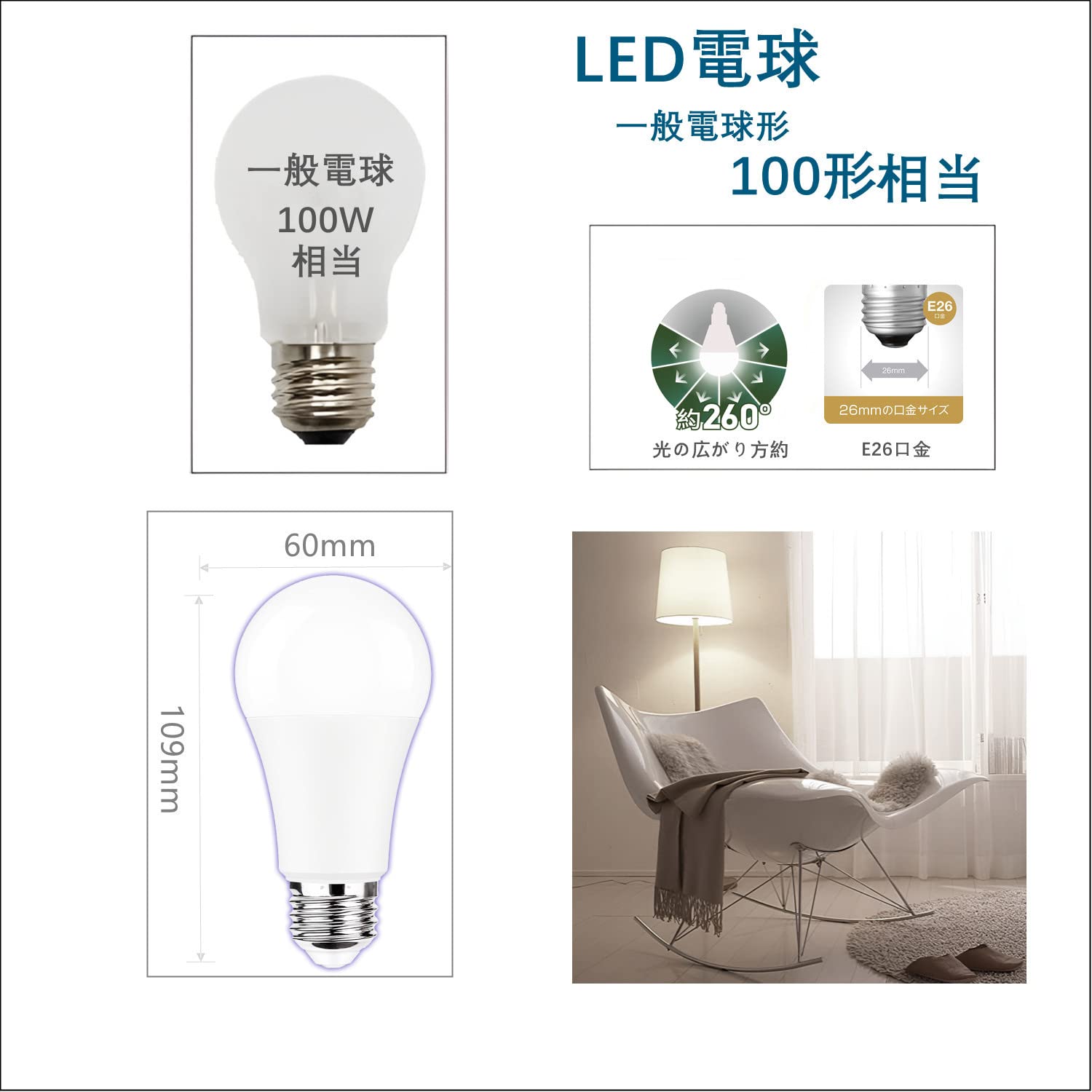 LED電球 E26口金 100W形相当 昼白色 1680LM 全方向タイプ 高輝度 一般電球形 断熱材施工器具対応 密閉器具対応 PSE認証 2個入 (昼白色)