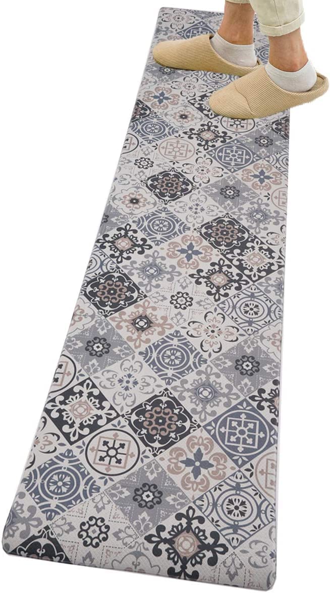 【厚いPVC】 足が疲れにく設計、もちもちの踏み心地でクッション性が高く台所マットです。長時間の立ち仕事も疲れにくい。このマットは素足でも、スリッパを履いたままでもいいです。物が落下しても衝撃を吸収し、床をキズやヘコミから守ります。