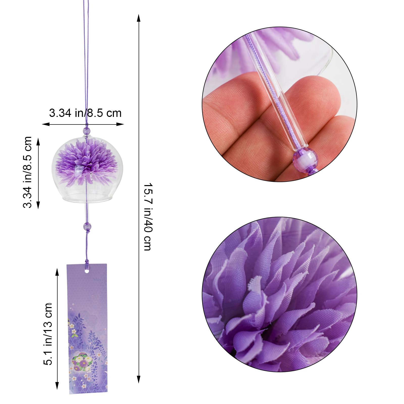MrMrKura 風鈴 グラス 手作り風鈴 6個セット 江戸風鈴 ガラス風鈴 可愛い 玄関風鈴 ウインドチャイム 花球 無地 カラフル オシャレ 澄んだ音 屋外 屋内 厄除く 幸運 プレゼント おしゃれ インテリア ギフト 飾り (花球付き)