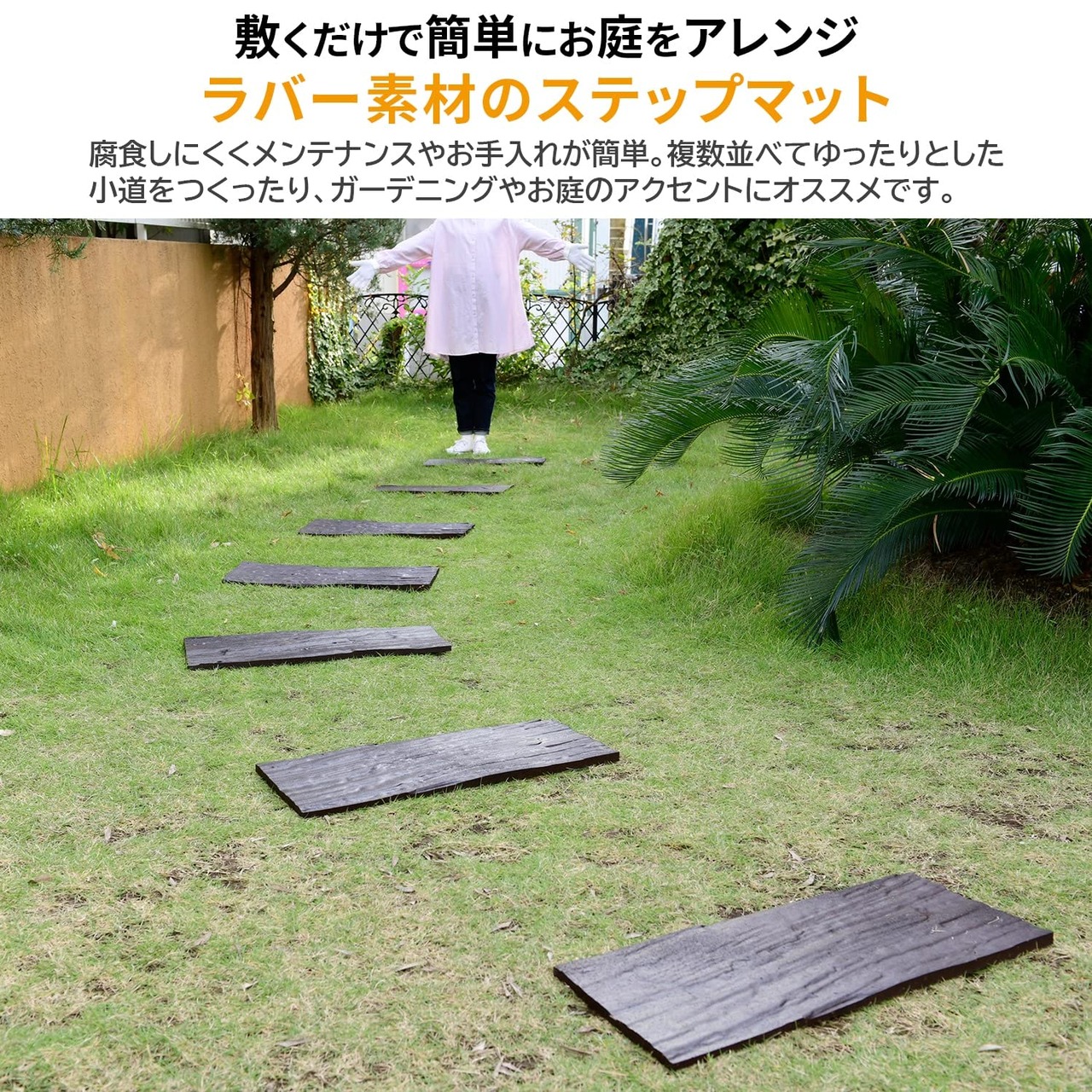 【特徴】敷くだけで簡単にお庭のアレンジができるステップマットです。ラバー素材を使用しているので、腐食しにくくメンテナンスやお手入れが簡単なのが特徴です。複数並べてゆったりとした小道をつくったりと、ガーデニングやお庭のアクセントにオススメです。