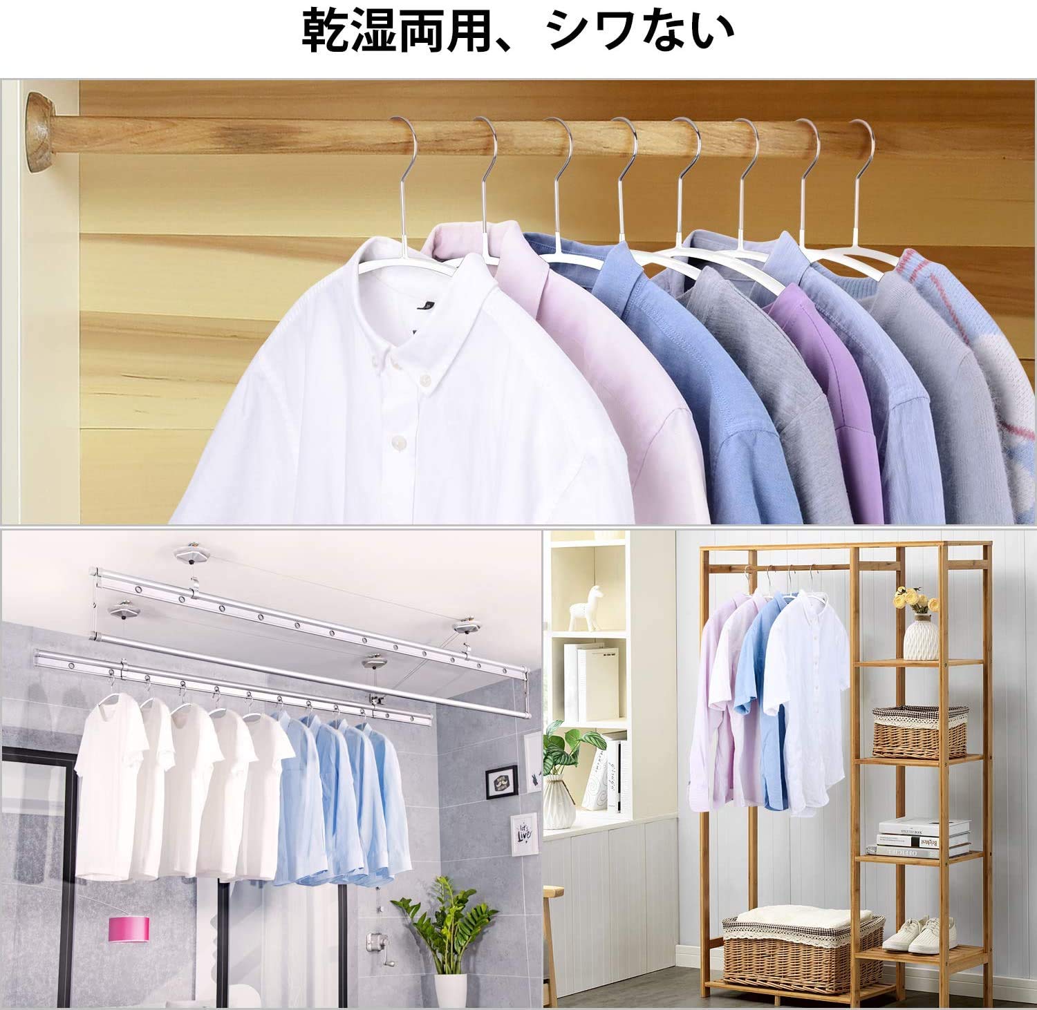 【最新版】:滑り止めのゴムコーティングで主にコーティングされています。力学の原理により、半円のデザインが肩の突起を取り除き、服の形をキープします。ぶら下がったリボンがついていない服に適します。