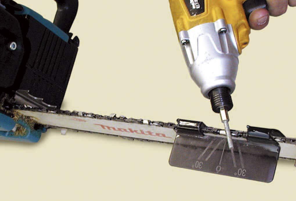 インパクトドリル・電気ドリル等に取り付けて、どこでも簡単・正確にチェーンソーの目立てが出来る