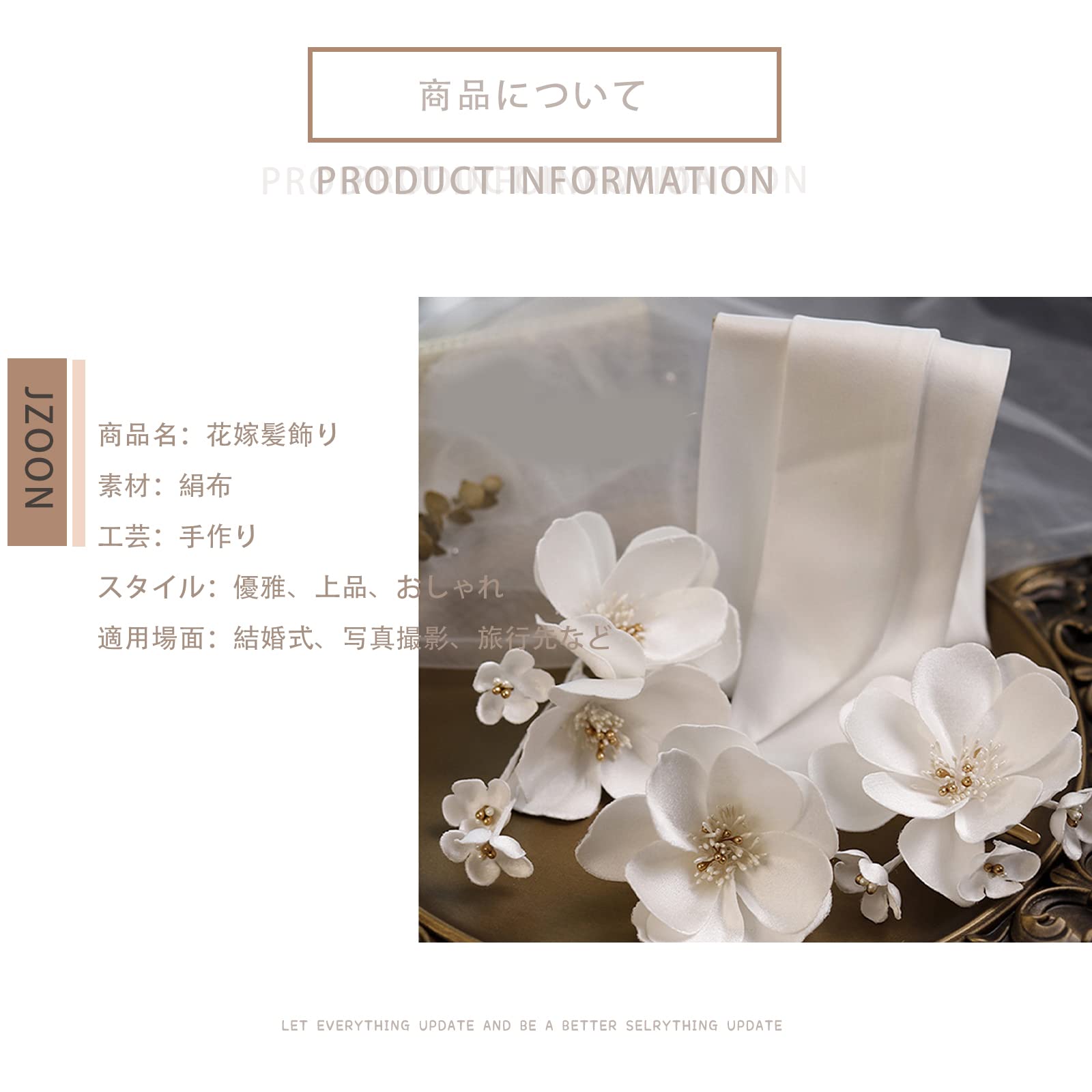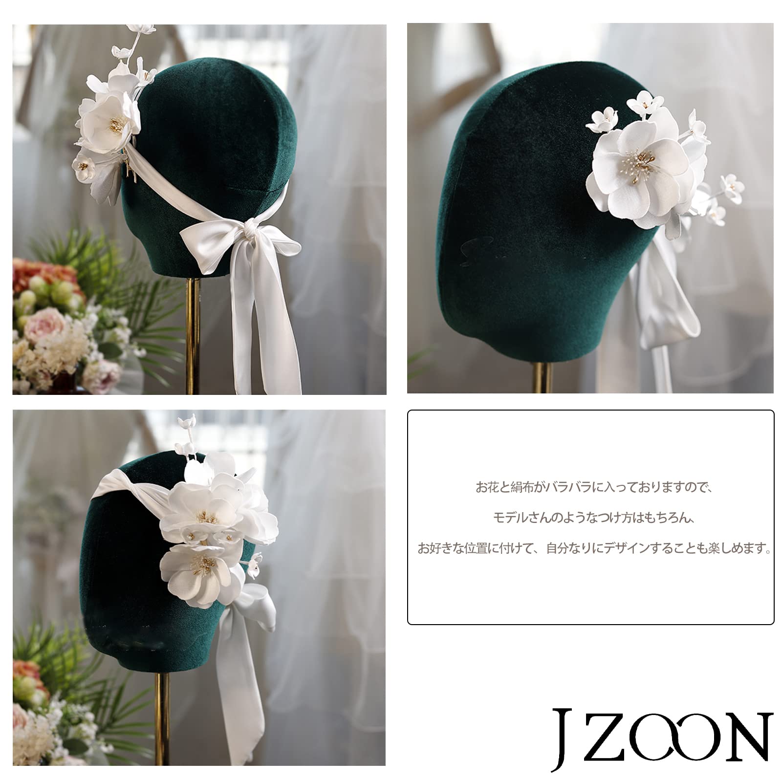 【使用場面多様】髪型に合わせて、小花がお好きな位置につけられ、絹布も自由に絞められ、多様なデザインができあがります。結婚式だけでなく、発表会、披露宴、パーテ、コスプレ、前撮りなど、華やか雰囲気に最適な一品です。自分へのご褒美としてはもちろん、本店はギフト包装をご提供しておりますので、女性友への最高なプレゼントとしてもお購入いただけます。