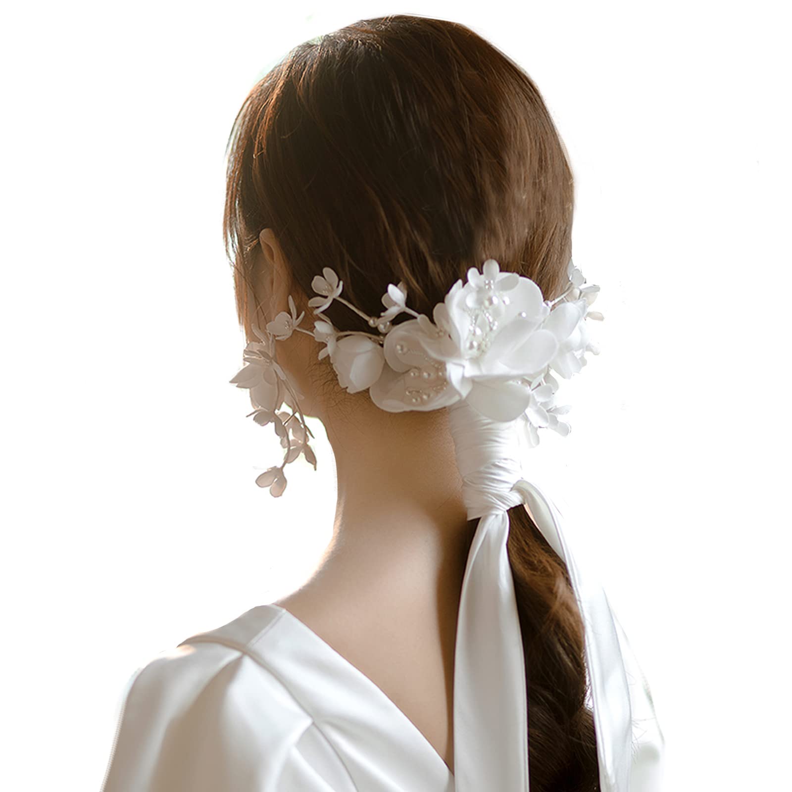 【花嫁に最適】 小花が髪クリップで固定、髪に優しく、脱着も簡単!髪型に合わせて、多様なデサインが可能です。伝統的な白無垢にもおしゃれな洋服にも、ご使用できる純白絹布と小花のヘッドドレスです。派手すぎず優雅、上品な花嫁を作り上げられ、一生忘れられない夢のような結婚式を叶えてくれます。