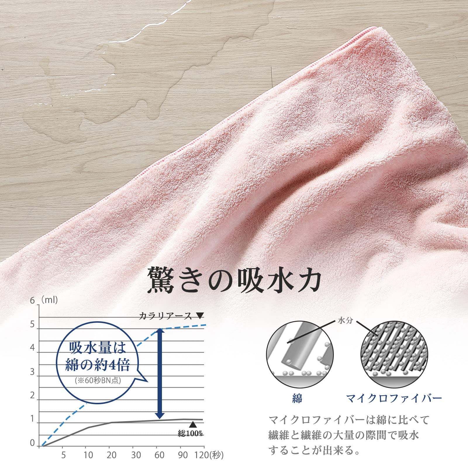 【吸水力】綿の約4倍吸水で、ふわふわ速乾バスタオル