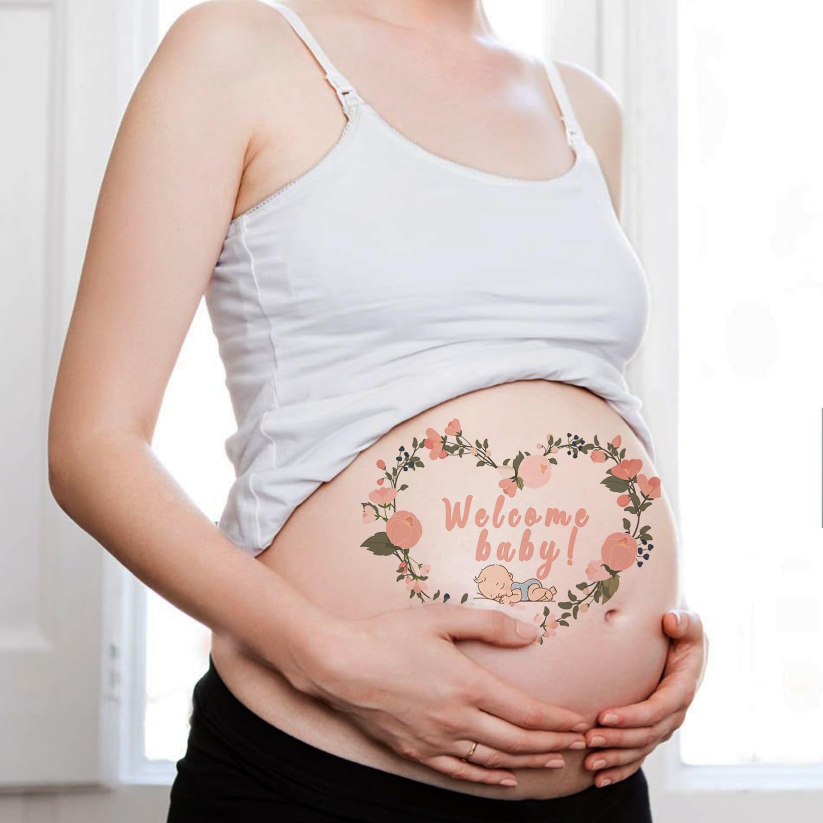 ❹このかわいくて美しいタトゥーステッカーは、妊婦の写真を撮るときの装飾に使用されます。水で濡らし、20〜30秒間皮膚に滞在して貼られます。使用後はベビーオイルで簡単に落とせます。