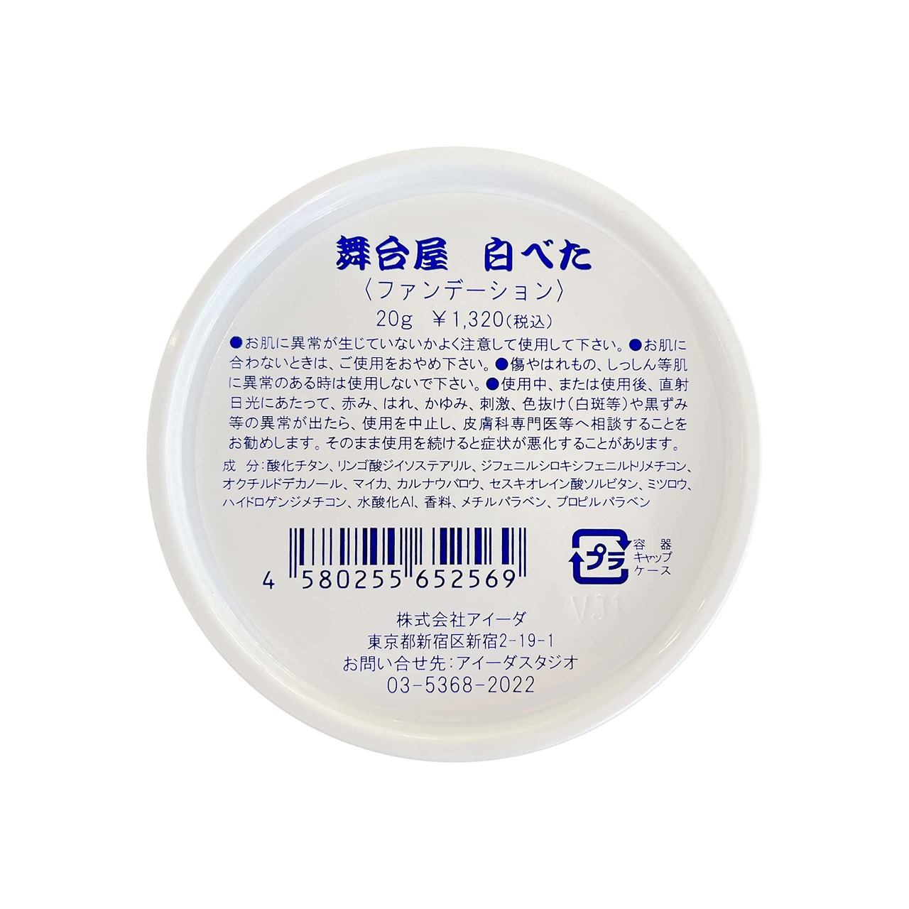 【公式】舞台屋 白べた ドーラン ホワイト 20g ファンデーション 舞妓 伝統芸能 舞台 フェイスペイント