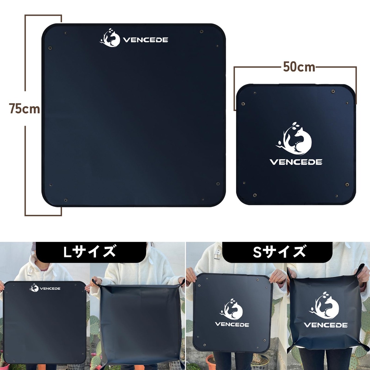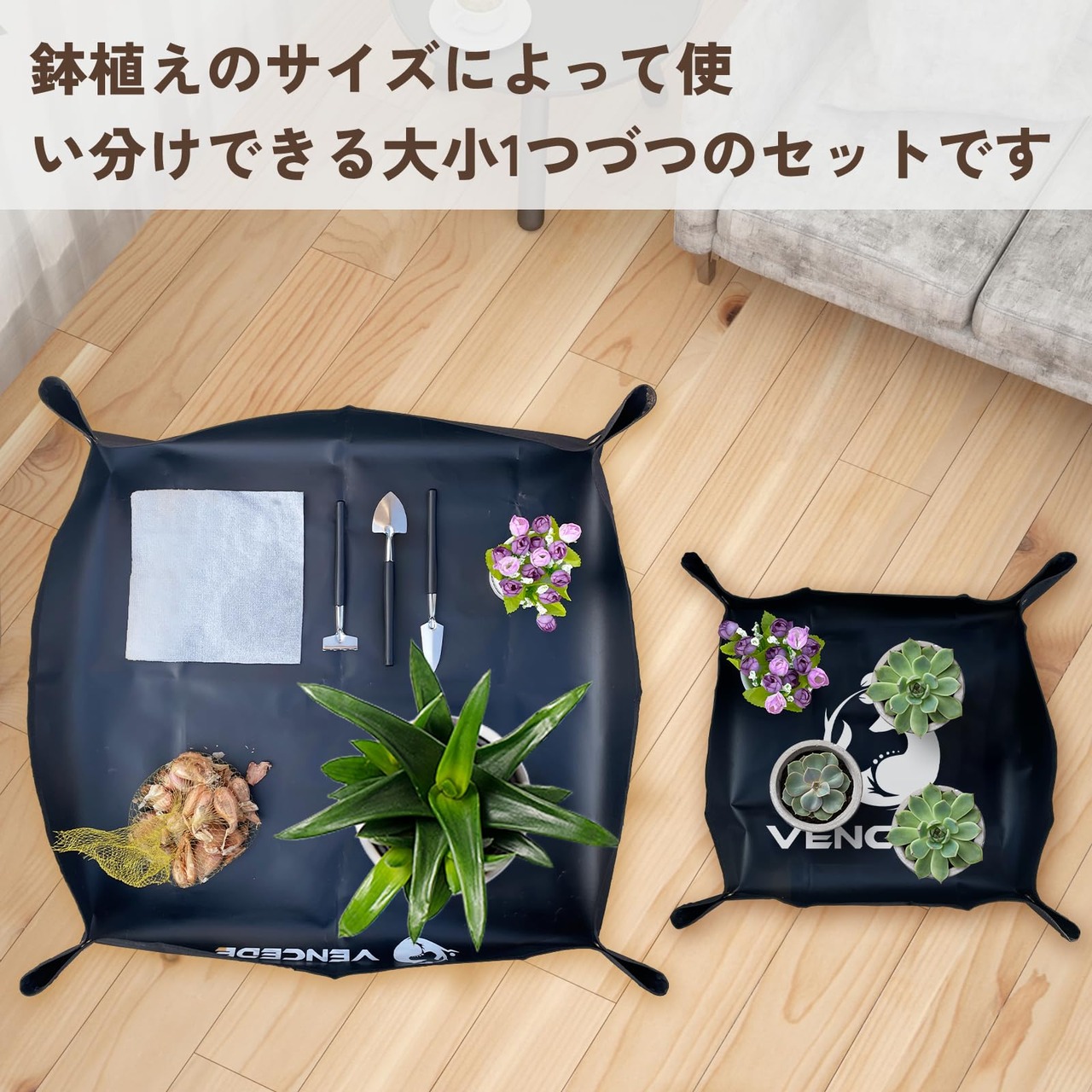 Vencede 園芸シート 防水 折り畳み 2サイズセット園芸マット 50cm 70cm ガーデニング シート 厚手 植え替えシートアガベ 多肉 塊根 ガーデニング マット園芸 トレイ ガーデニング トレイ 黑 園芸用品 ガーデニング用品