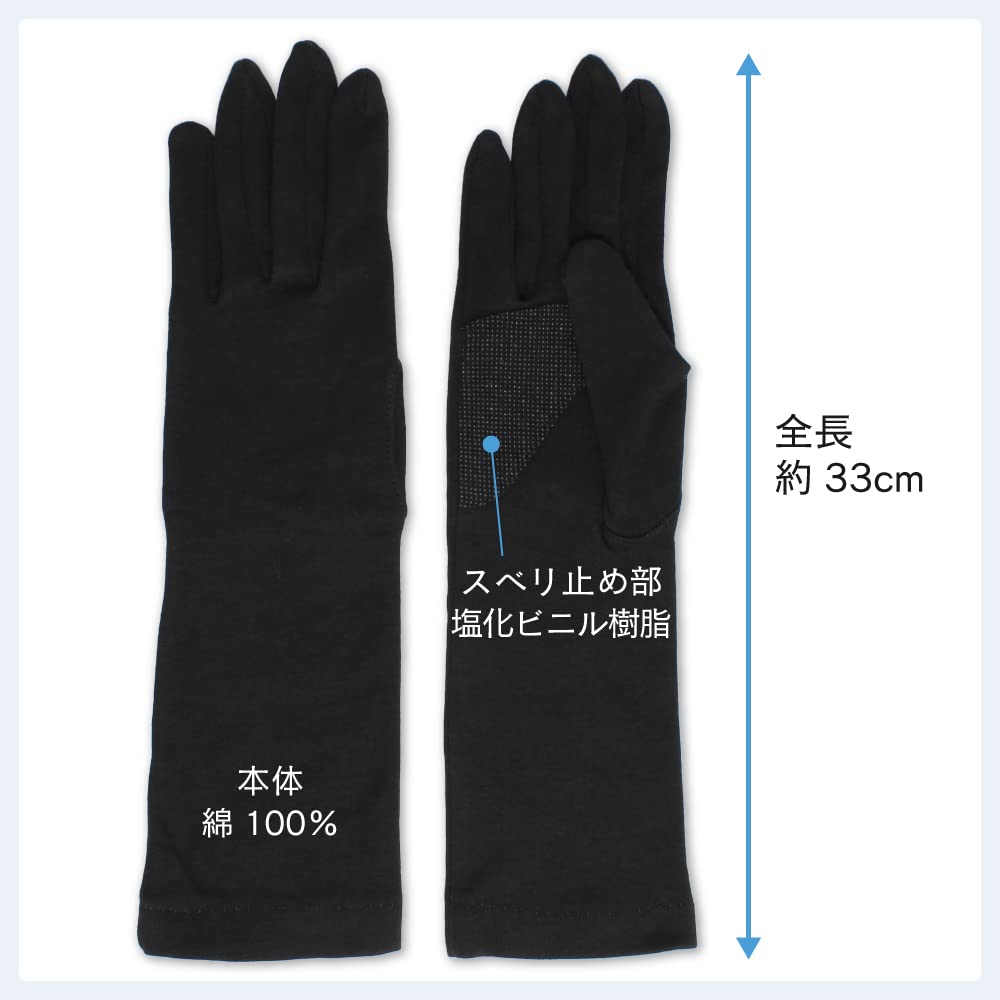おたふく手袋 夏用アームカバー[コットン100% レディース用 スベリ止め付 セミロング] UV-3231 ブラック フリーサイズ