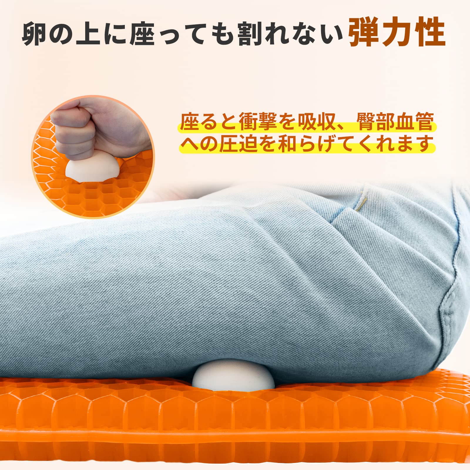 座り方によっては生卵を置いて上から座っても割れない程のクッション性、体がまるで水面に浮いているような感じ セット内容: 1×ゲルクッション 1×カバー ・サイズにつきまして、本製品は延性のあるゲルを採用しているため、実測値と参考寸法の間に多少のズレがあります。 ・ゲル材料なので、開封の際若干ゲル臭い匂いがする場合は、カバー外して風通しの良い場所で数時間放置すると匂いは消えます。 長時間座り作業しても蒸れないクッション、 こういう方ににオススメ: ・サラリーマン ・オフィスチェアに長時間座ったままでパソコンに向かっている人 ・運転者 ・高齢者 ・釣りが好きな人 ・自分用や家族や友人にお祝日、誕生日、敬老の日のプレセント