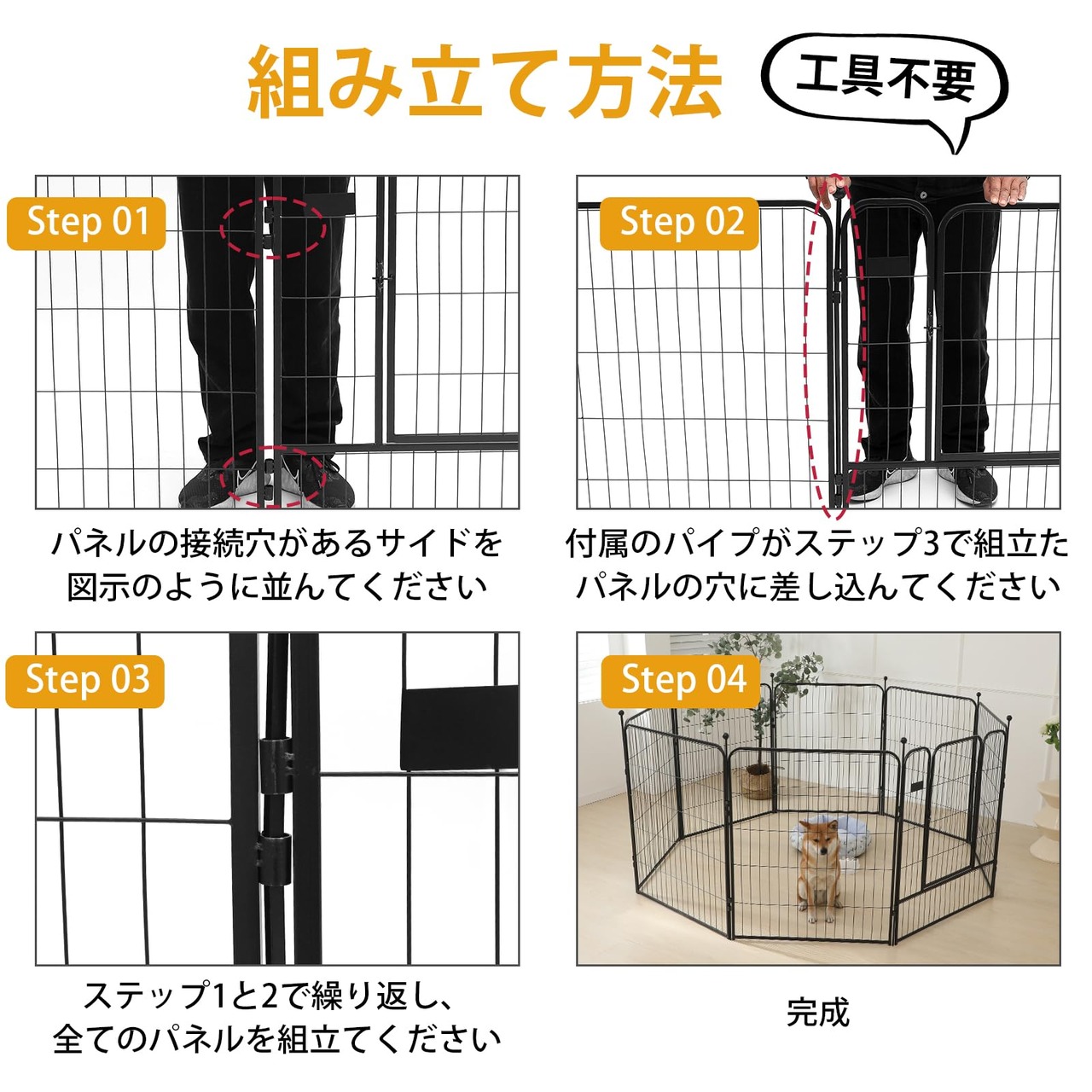 簡単設置:工具不要で、簡単に組み立てられる設計です。お手持ちのスペースに迅速に設置でき、ペットの安全なスペースを確保できます。