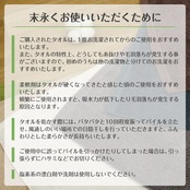 【ご使用の際のお願い】 ■綿製品の特性上、毛羽落ちがございます。 ■一度お洗濯してからのご使用をおすすめいたします。 ■柔軟剤の過度な使用は毛羽落ちや吸水性の低下につながりますので、タオルが硬くなってきたと感じた頃のご使用をおすすめいたします。 ■塩素系漂白剤や塩素系洗剤のご使用は色落ちや変色してしまいますのでお控えください。