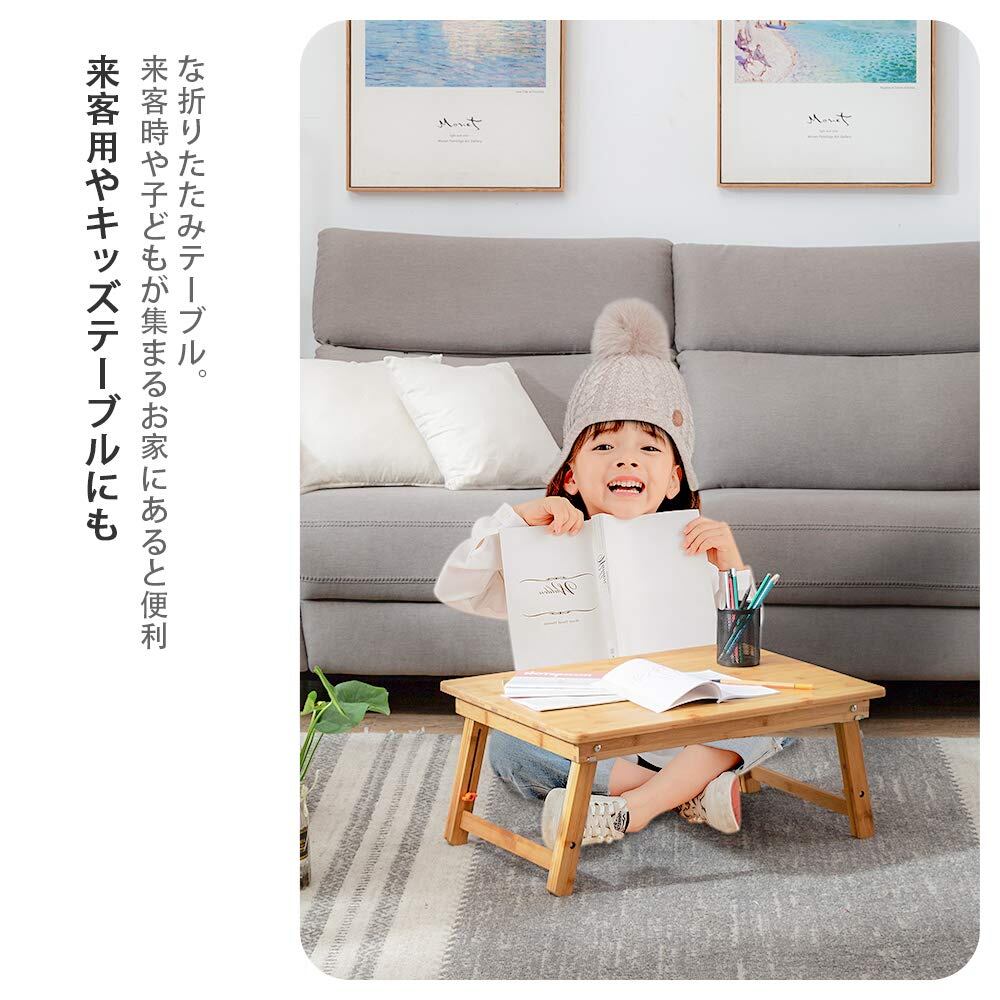 多功能: 竹製のシンプルなデザインだから、とってもおしやれで大人気の商品ですよ。お子様のお絵描きやドリル用の机として使ったり、ピクニックやキャンプに持って行ったり…お部屋でも、アウトドアでも大活躍