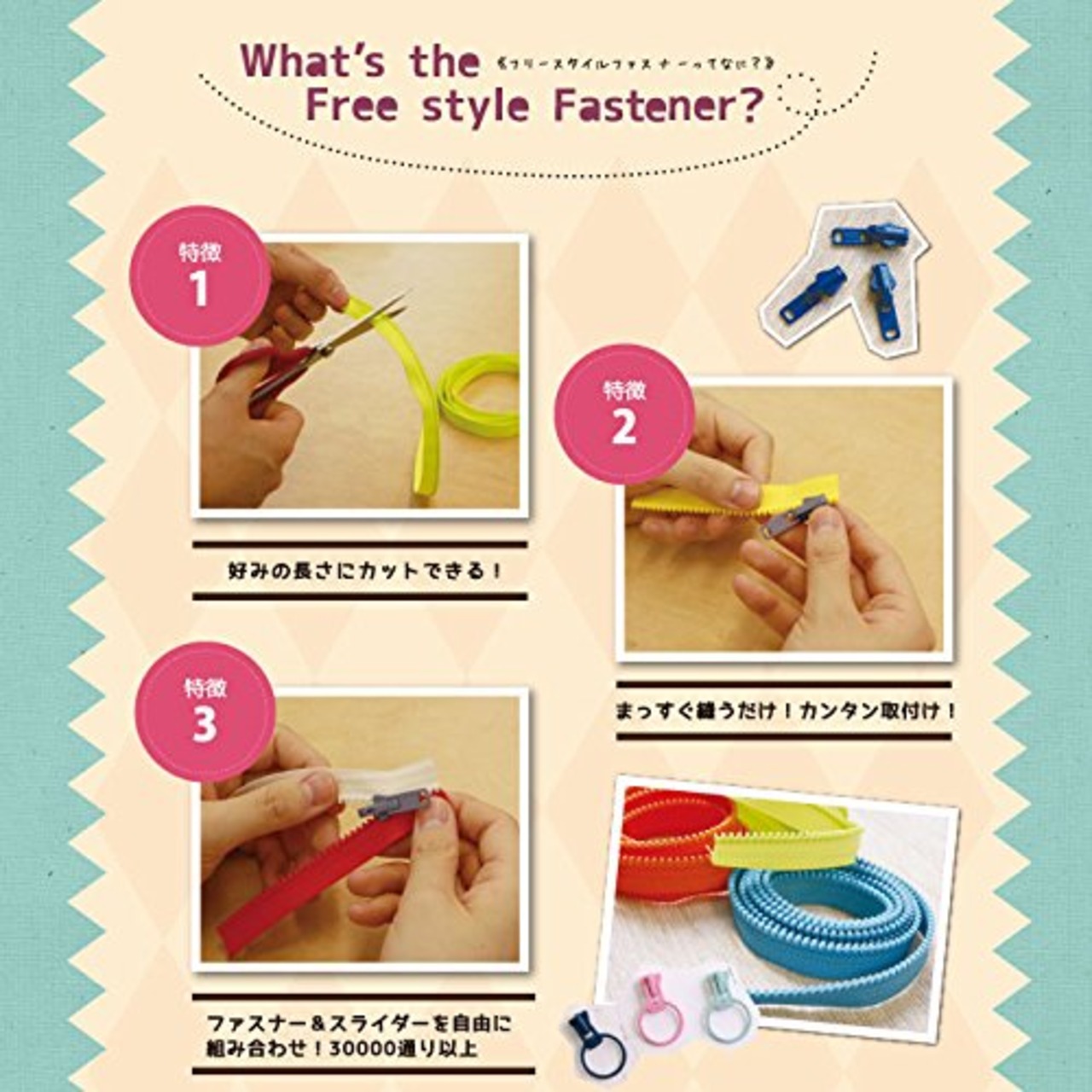 色の組み合わせ自由自在のファスナー!