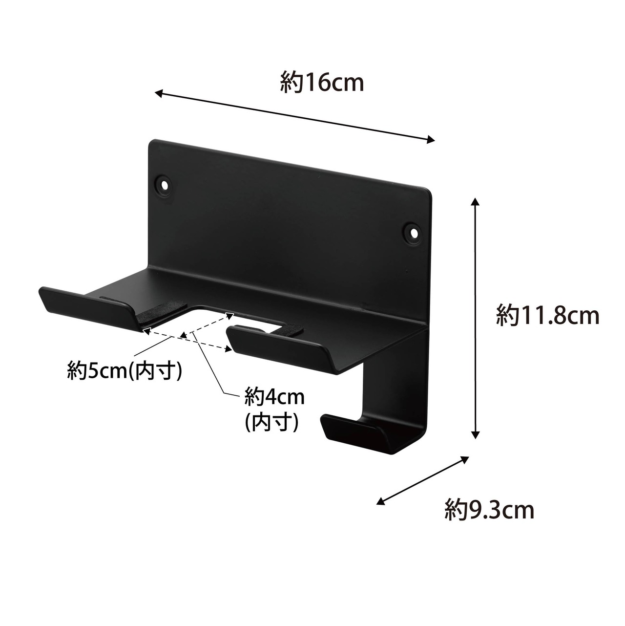 山崎実業(Yamazaki) 【 石こうボードピンセット・木ネジ 付属 】 石こうボード壁対応 ウォールドライヤーホルダー ブラック 約W16×D9.3×H11.8cm タワー tower ドライヤー収納 コードもまとめて収納 4509