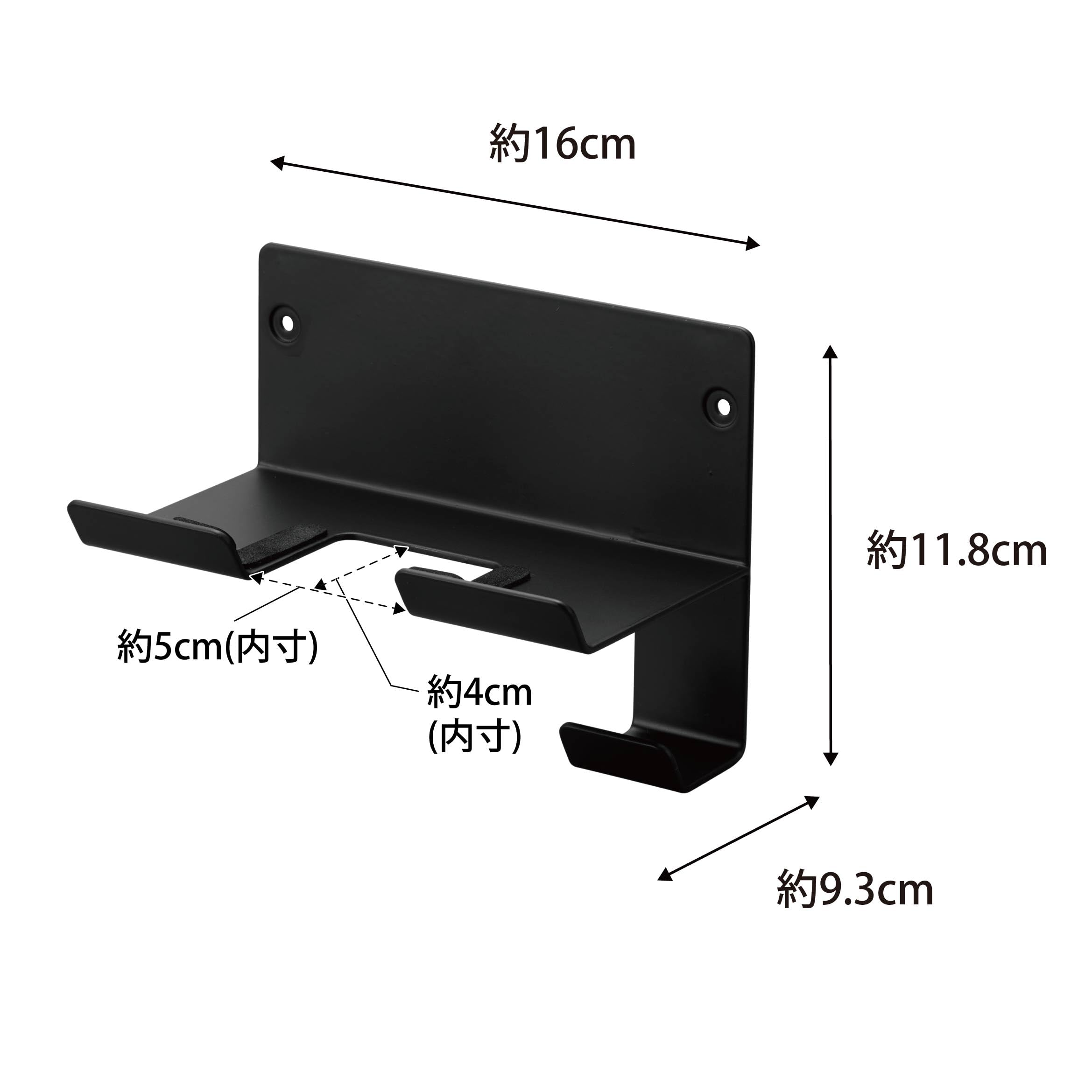 山崎実業(Yamazaki) 【 石こうボードピンセット・木ネジ 付属 】 石こうボード壁対応 ウォールドライヤーホルダー ブラック 約W16×D9.3×H11.8cm タワー tower ドライヤー収納 コードもまとめて収納 4509 | geisha Cat*