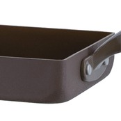 素材:本体/アルミニウム合金 オリジナル縁巻き深型形状、(エッグパンは除く)、内面/ダイキンekダイヤモンドコートブラウンカラー(耐摩耗性試験30万回)、外面/耐熱焼付塗装、底面/ステンレス(sus430) 0.4mm圧着、ハンドル/フェノール樹脂