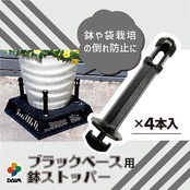 大好評販売中のブラックベースに専用の鉢ストッパーが登場!ブラックベースに取り付ける事で、鉢や袋栽培の転倒防止になります。1袋に4本入っているので、ブラックベースの4ヶ所に固定をする事で鉢や袋をしっかりささえます。ストッパーは、ブラックベースのメッシュ部分に取付け出来るので、様々な形状の鉢や袋の固定が可能です。ストッパーの上部には穴が空いているので、紐を通して鉢に巻き付けるとさらにしっかりと固定する事も可能です。ブラックベースの全サイズに使用可能です。