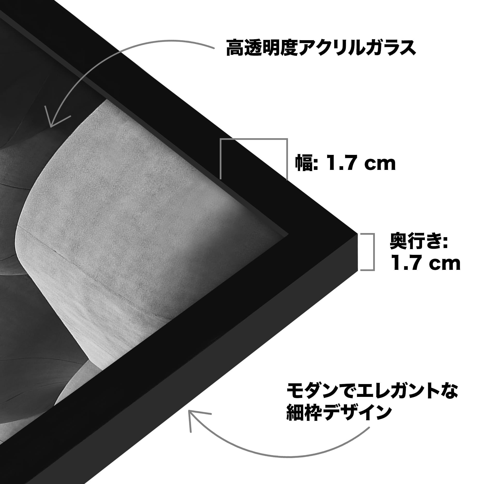 時代を超えたデザイン: スリムで洗練されたデザインとモダンな細枠が特徴のこのポスターフレームは、どんなインテリアにもスタイリッシュなアクセントを加えます。ギャラリースタイルのフレームで、写真やアートを引き立てます。