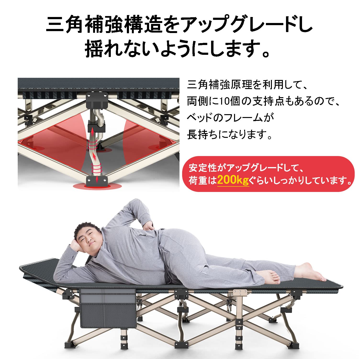【頑丈な鉄骨】-重鋼管を使用して、X型構造の携帯型折りたたみベッドは安全と安定を確保し、200 KGを支え、丈夫な大人をサポートできます