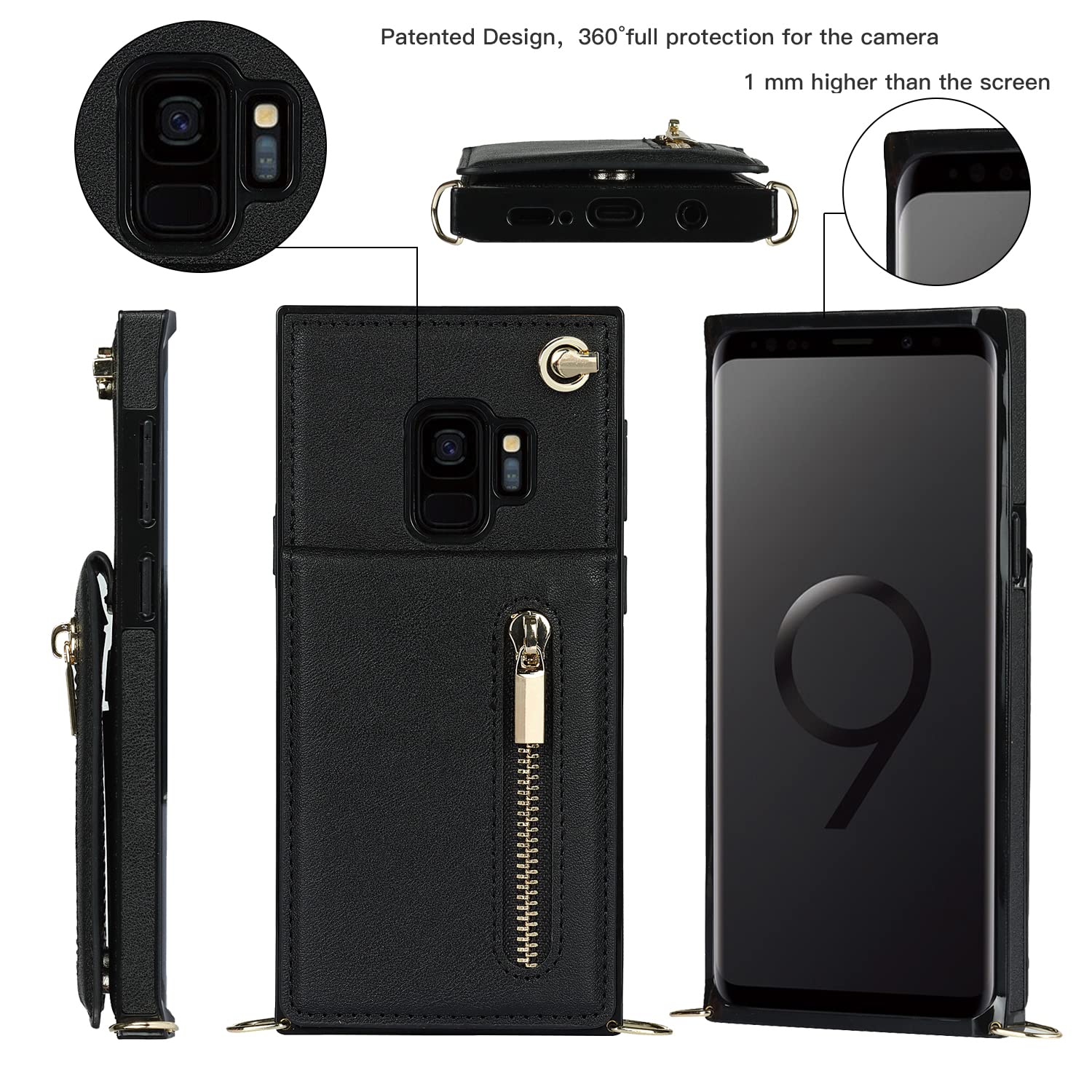 Galaxy S9 ケース 手帳型 ショルダー クロスボディ S9 galaxy ケース SC-02K SCV38 ケース 手帳型 ギャラクシー S9 カバー Galaxy S9 手帳ケース ギャラクシーs9 サムスン SC02K ケース ギャラクシー galaxyS9 ケース CASE 適用 【iCoverCase】 肩がけ 首掛け 斜め掛け カードケース チェーン ファスナー型 ストラップ付き ショルダーケース クロスボディケース カード入れ スマホケース 携帯カバー ブラック