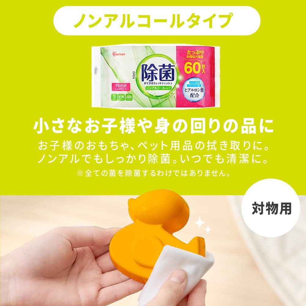アイリスオーヤマ(IRIS OHYAMA) ウェットティッシュ ノンアルコール 除菌 480枚(60枚入×8個) コンパクト 掃除 持ち歩き 携帯 大容量 保湿 WTS-60N8P