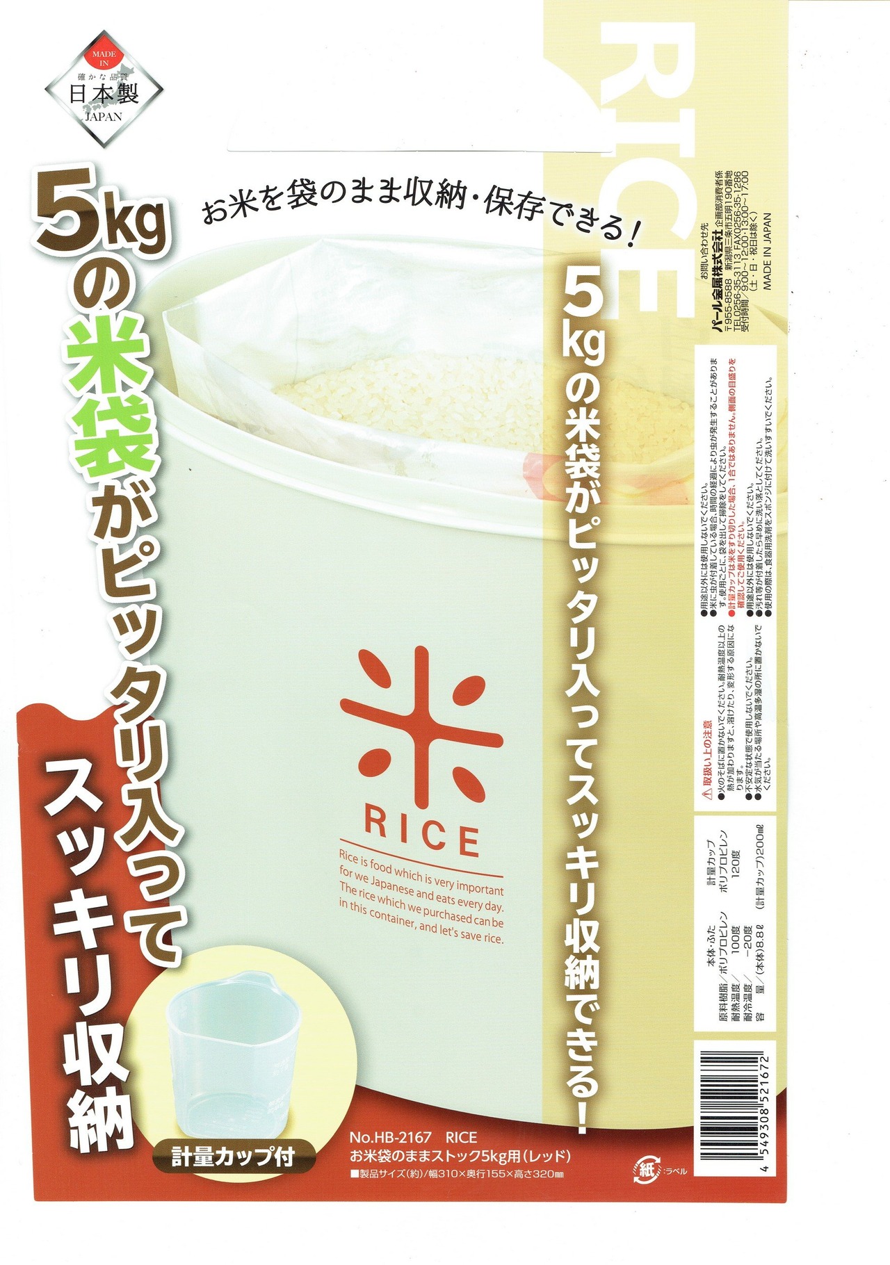 パール金属 日本製 米びつ 5kg レッド 計量カップ付 お米 袋のまま ストック RICE HB-2167