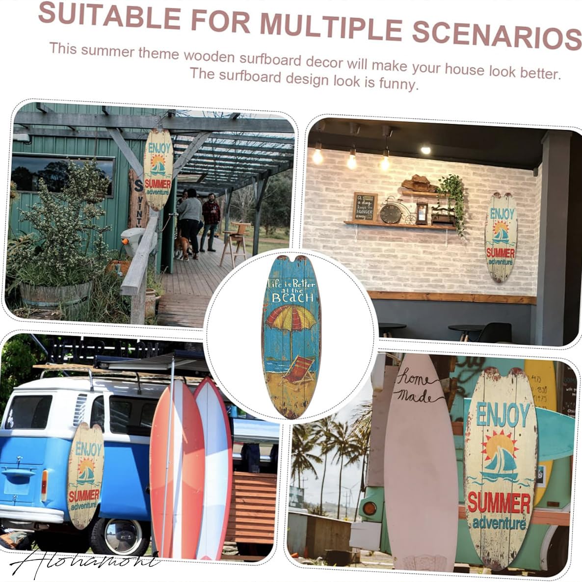 [ALOHAMONI] ヴィンテージ アメリカン ウッド サーフボード サインボード 木製 プレート 看板 ウェルカムボード アンティーク レトロ カフェ USA カリフォルニア 西海岸 ハワイ (①ターコイズBEACH)