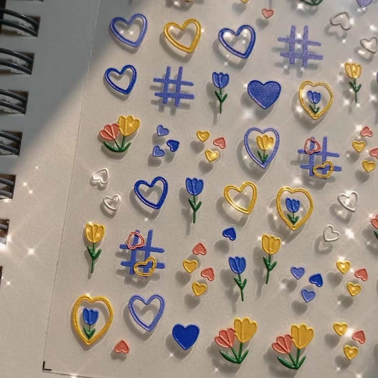 【夢のデザイン】: 各ステッカーには50パターン以上あり、1つはかわいい形と言葉がたくさんあるかわいい庭のアヒルです。もう 1 つは、カラフルなチューリップ、ピーチ ハート、シンボルなどを使って、グラフィティ パストラル スタイルを作成することです。