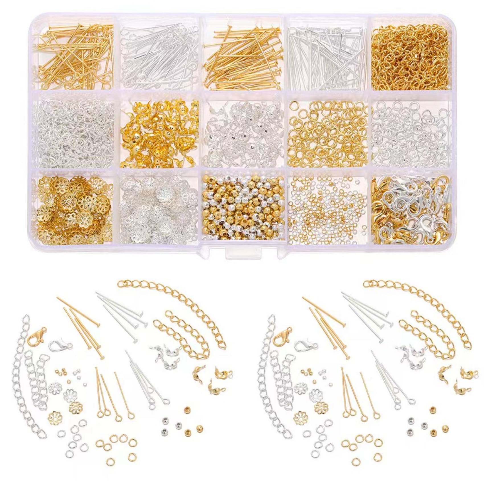 Arti-Cipesアクセサリーパーツセット ハンドメイド 金具 セット 9種類 1260個 パーツ DIY用 大容量 金具パーツ マルカン ペンチ 丸カン 座金 花座 カニカン パーツ 基礎パーツセット アクセサリー 紐止め 手作り 手芸 イアリング ハンドメイド 収納ケース付き (ゴールド+シルバー 1260個)