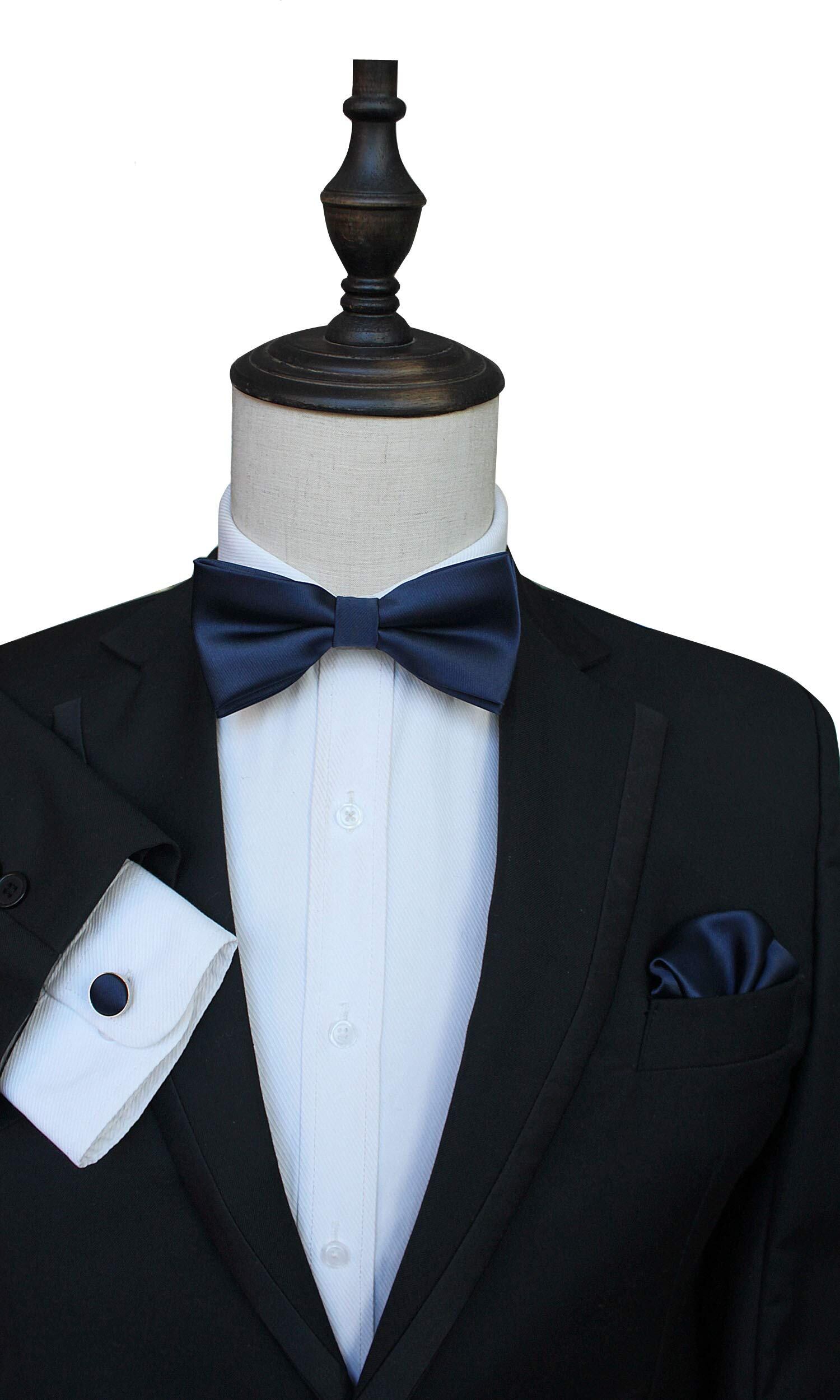 [JEMYGINS] 無地蝶ネクタイとポケットチーフ カフスボタン付き メンズ