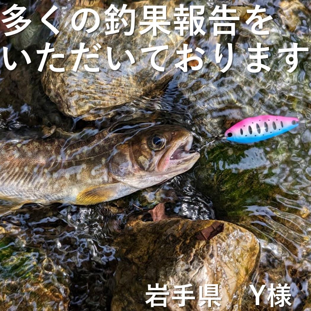ヤマメ イワナ ニジマス アマゴ オショロコマ カワマス ブラウントラウト イトウ サクラマス サツキマス アメマス などのトラウト系を狙うスプーンルアーセット また淡水ではブラックバス、ウグイ、ナマズ、ライギョ、海では、アジ、サバ、ハゼなどの小魚を捕食する魚であれば何でも狙えます。