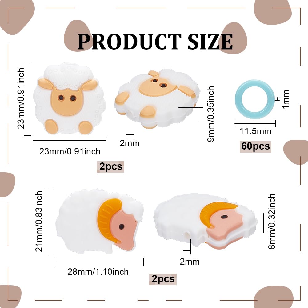 サイズ詳細:編みステッチマーカーリング: 1.15x0.1cm、60個;羊の編み針ストッパー: 23x23x9mm、穴: 2mm、2個;21x28x8mm、穴: 2mm、2個。