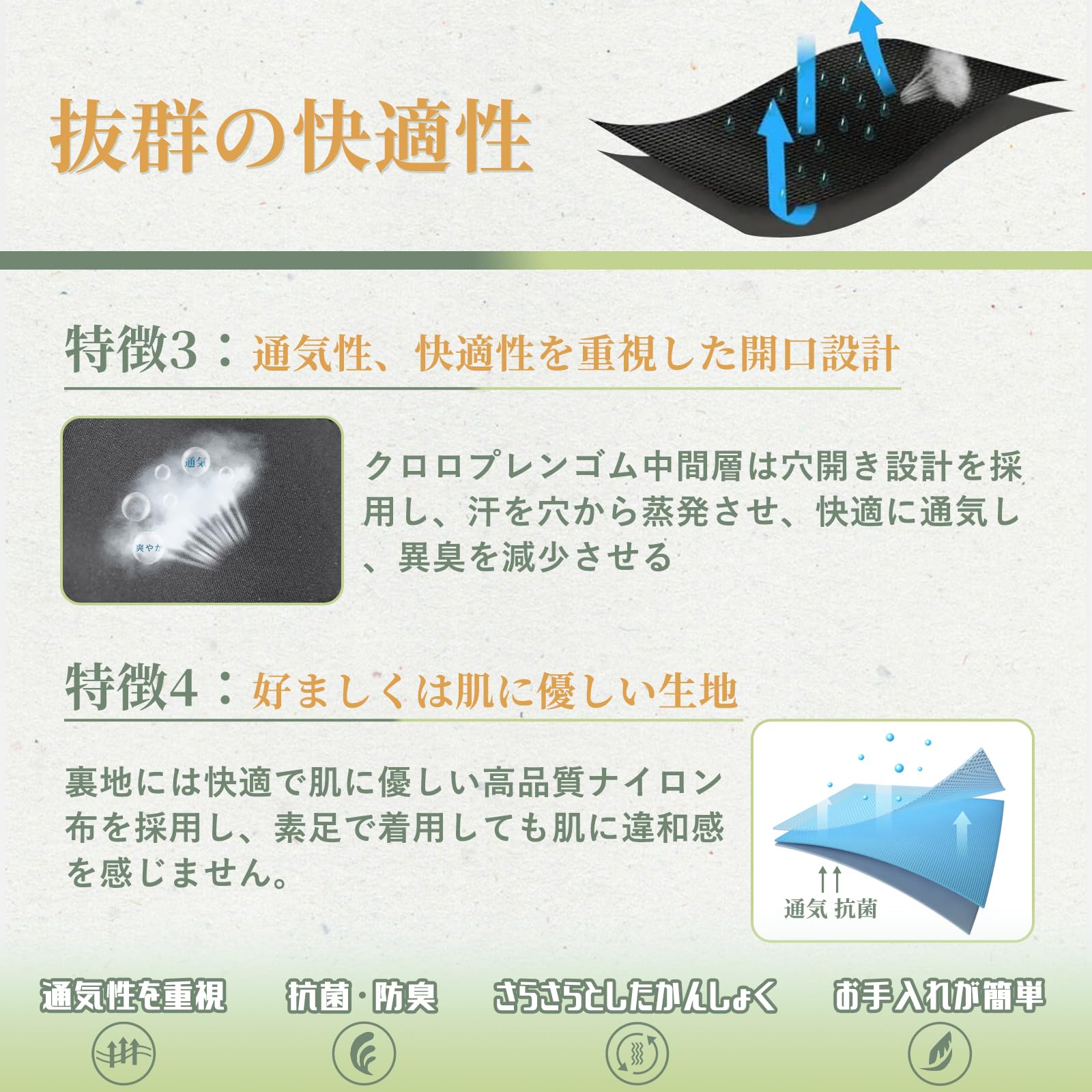 高品質なネオプレン素材を採用、肌にやさしく、耐熱性や耐寒性にも優れているので、快適な装着感を提供します。しっかりした縫製で、耐久性にも優れています!