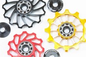 ・マイクロヒーロー(MicrOHERO)のアルミCNCボーディにセラミックベアリング使用しました、軽量リアディレーラー用プーリーです。