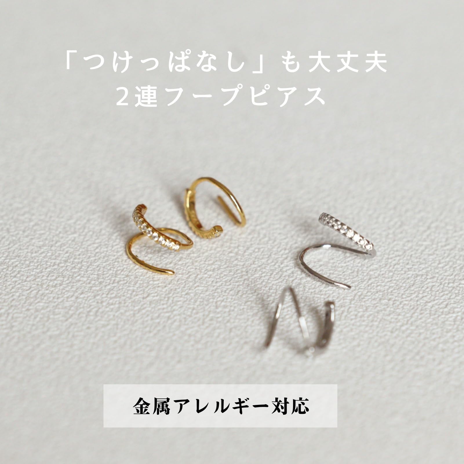 キャッチのない、一度着けると外れる心配もないのでなくならない?嬉しいデザインです!