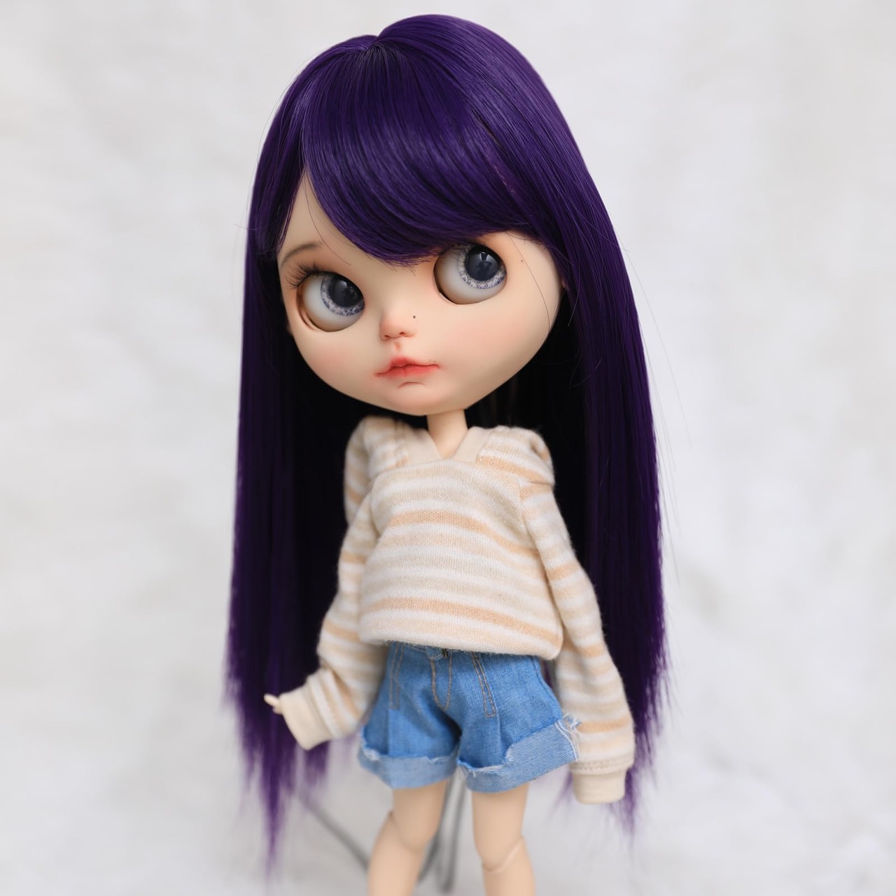 Linfairy 9-10 inch 人形用 ロング ウィッグ 長い髪 (Purple)