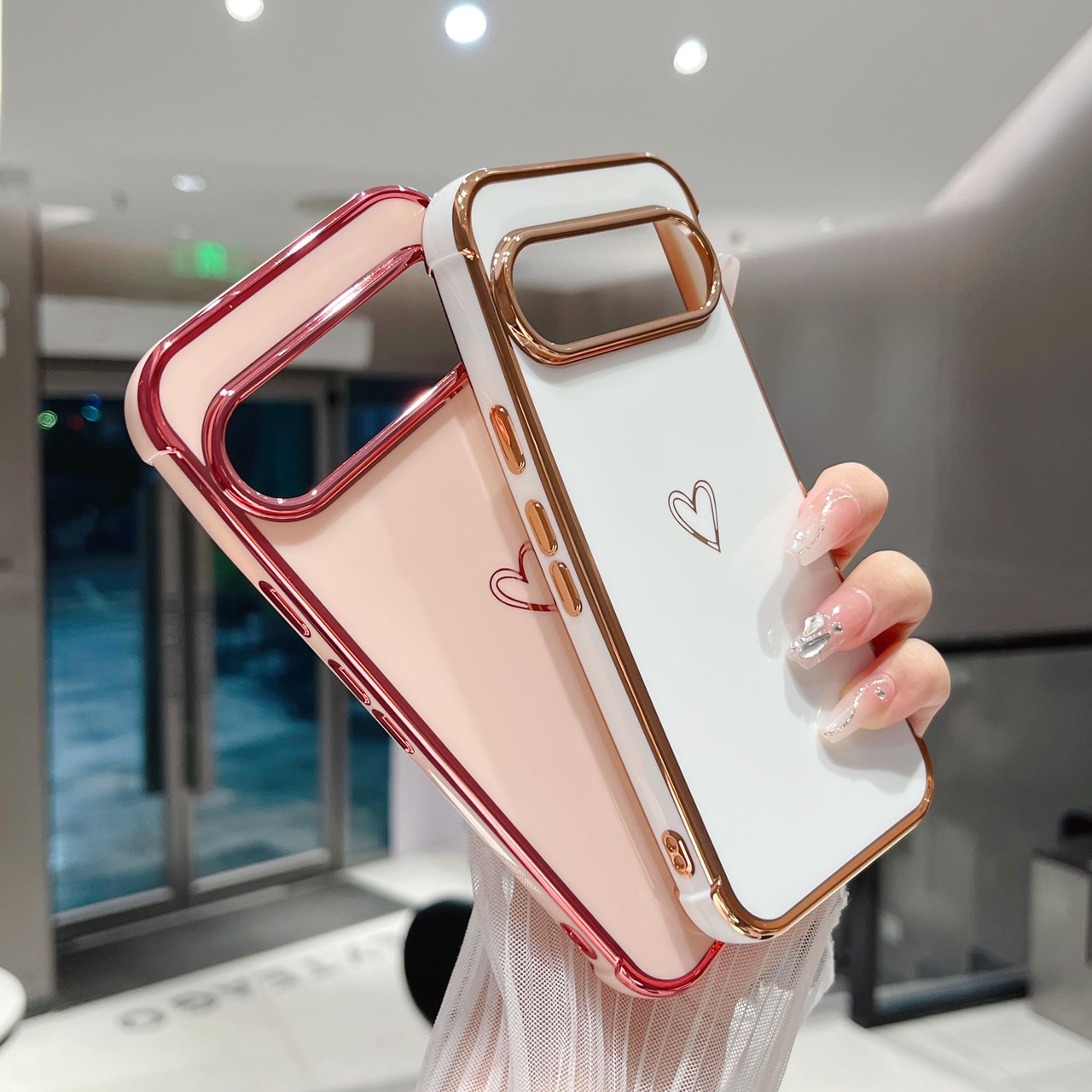 Google Pixel 9/9 Pro (6.3インチ)に対応、購入前に機種をご確認ください。柔らかく柔軟なtpu素材を使用し、エッジとカメラエッジの周りにメッキ技術を使用しています。キュートなラブハートパターンとメッキエッジは、あなたの携帯電話のファッションとスタイリッシュにします。