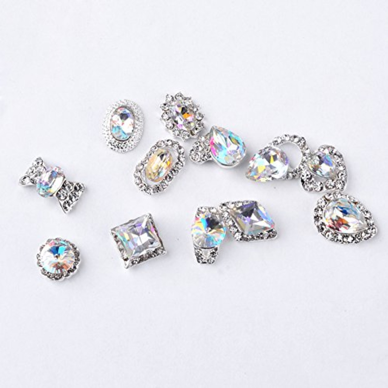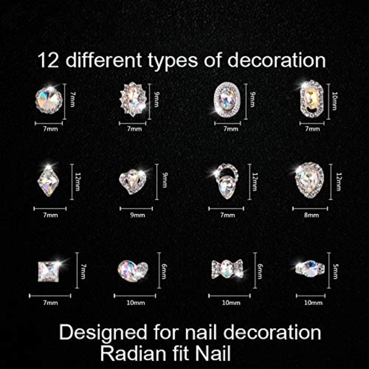 サイズ:写真に付きました。 キラキラでめちゃ可愛くておしゃれです。 12種類の形が揃っていて、夏ネイルにぴったりなパーツです。 ネイルデザインのパーツとして使うのはもちろん、スマホカバー、帽子などの飾りとしてもご利用いただけます。 パッケージ:12個のラインストーンは一つのケースに入ります。