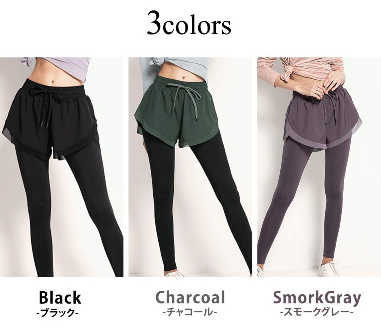[Teddy] ヨガパンツ ショートパンツ一体型レギンス レディース 薄手 フィットネス スポーツウェア 吸汗速乾 yoga061